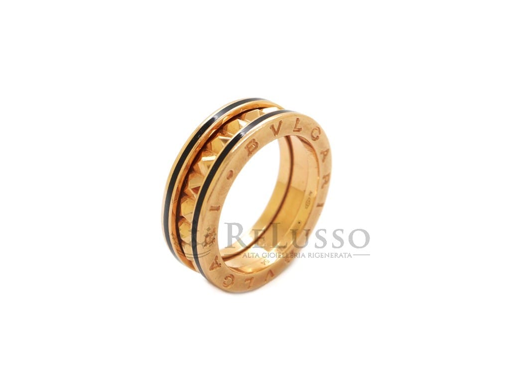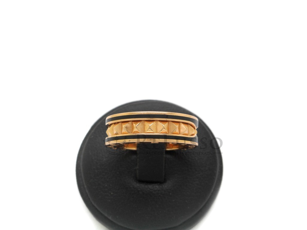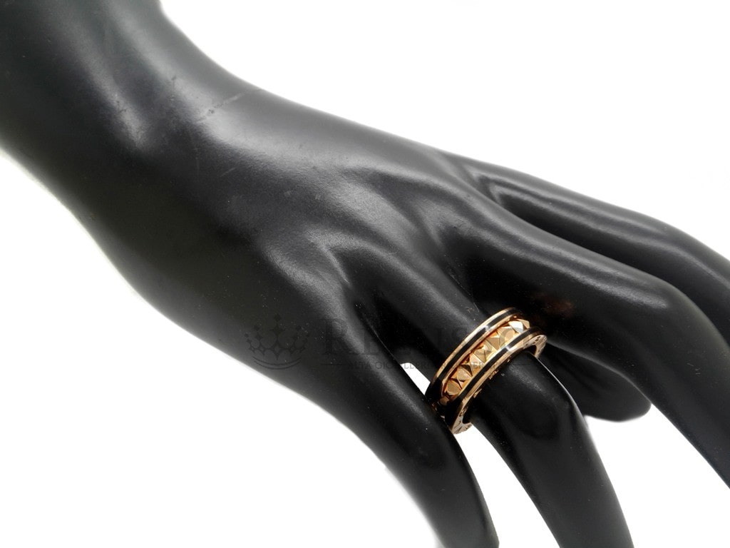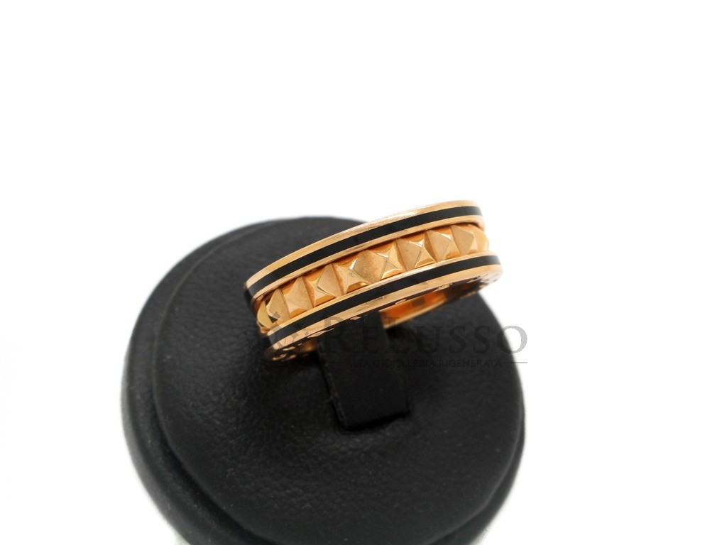 Anello Bulgari B.Zero1 Rock ad una fascia in oro rosa 18kt con profili in ceramica nera e spirale con borchie.