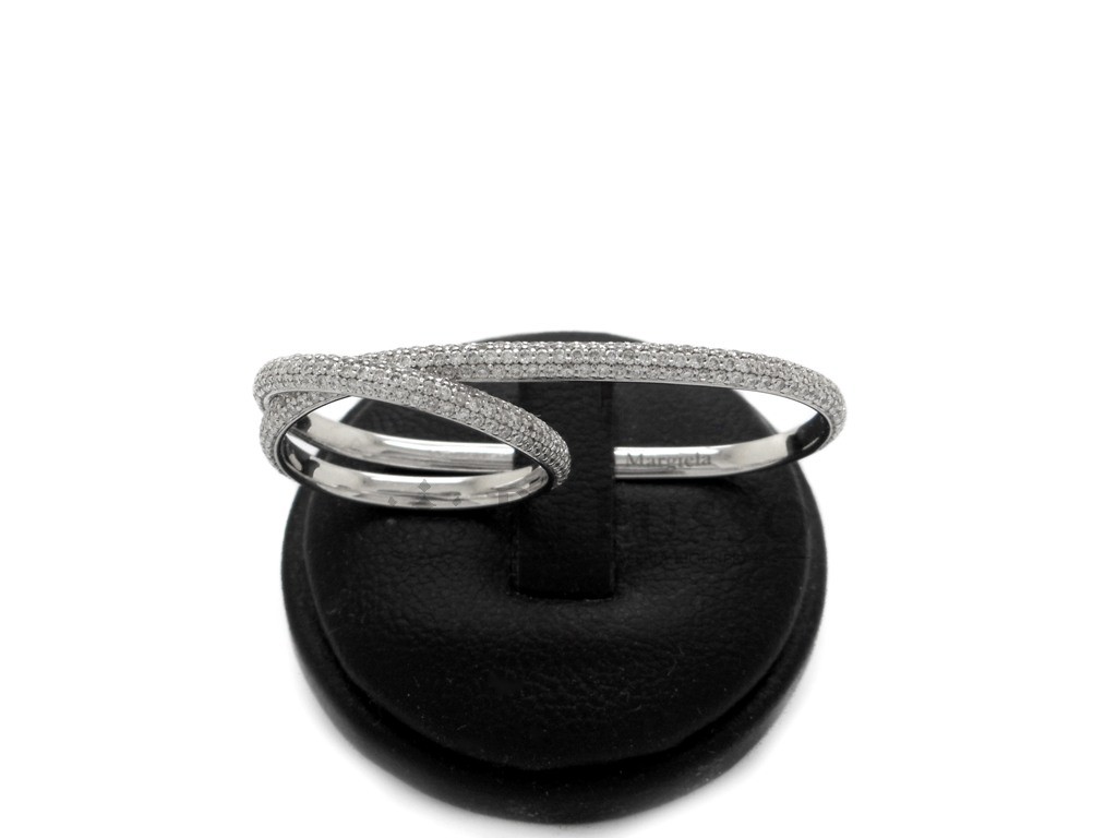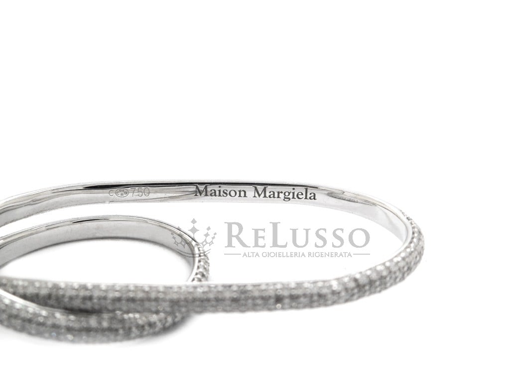 Anello doppia riviera firmato Maison Margiela in oro bianco 18kt con pavé di diamanti taglio brillante rotondo per un peso complessivo stimato di 1,50ct, colore G-H, purezza VS. Misura 13 ITA.