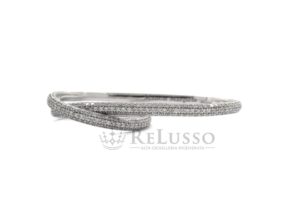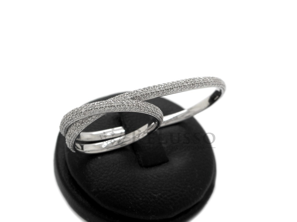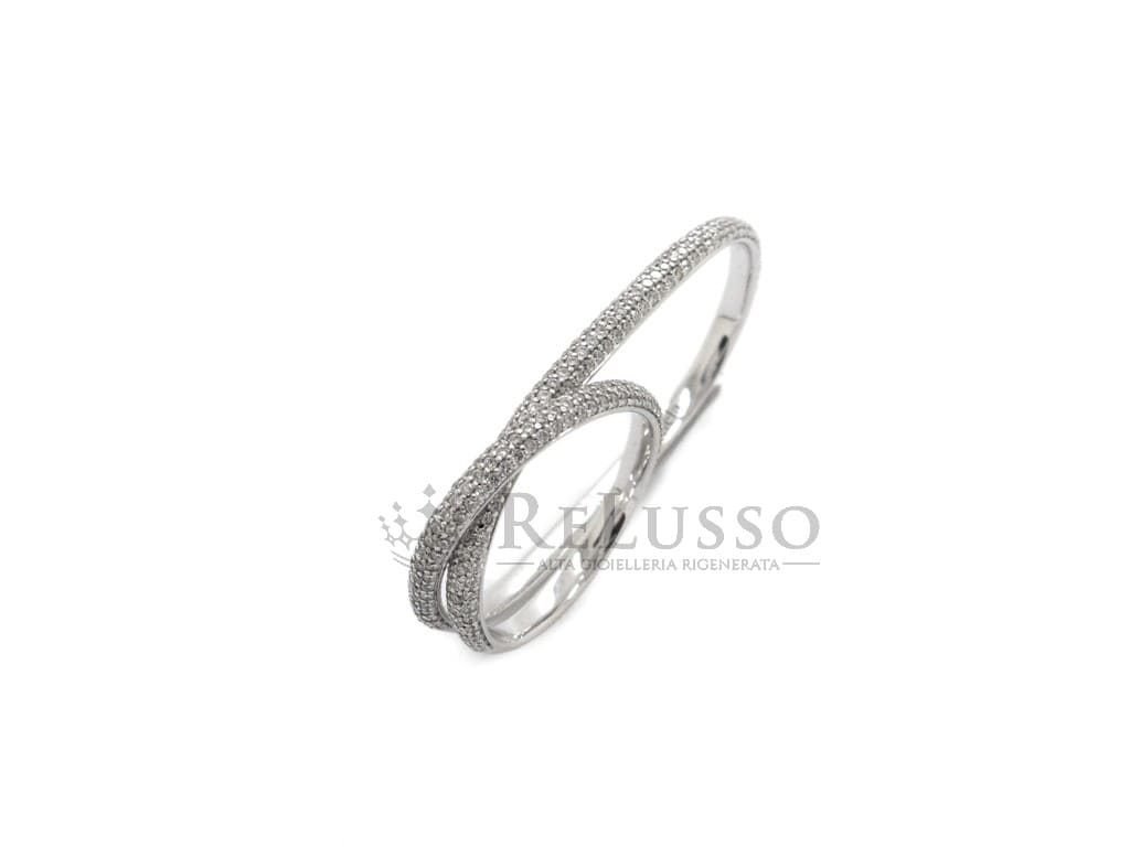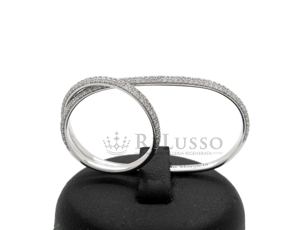 Anello doppia riviera firmato Maison Margiela in oro bianco 18kt con pavé di diamanti taglio brillante rotondo per un peso complessivo stimato di 1,50ct, colore G-H, purezza VS.