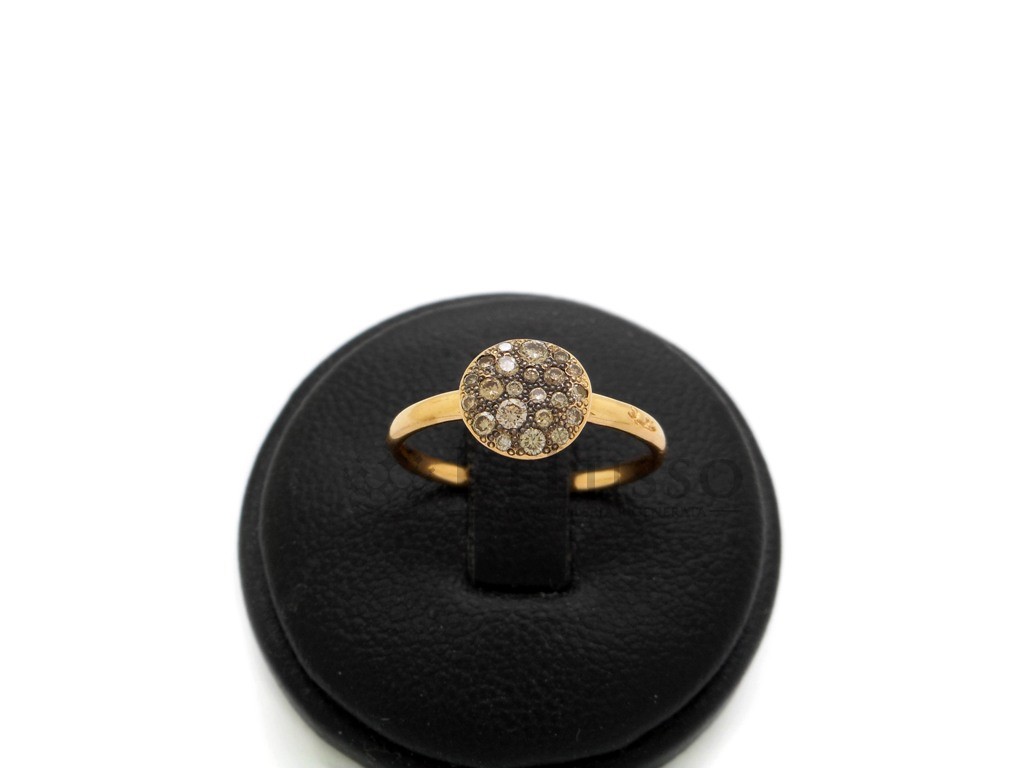 Anello Pomellato proveniente dalla collezione Sabbia, modello rotondo piccolo, realizzato in oro rosa 18kt con pavé di diamanti brown taglio brillante per un peso complessivo stimato di 0.30ct.