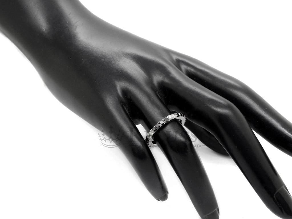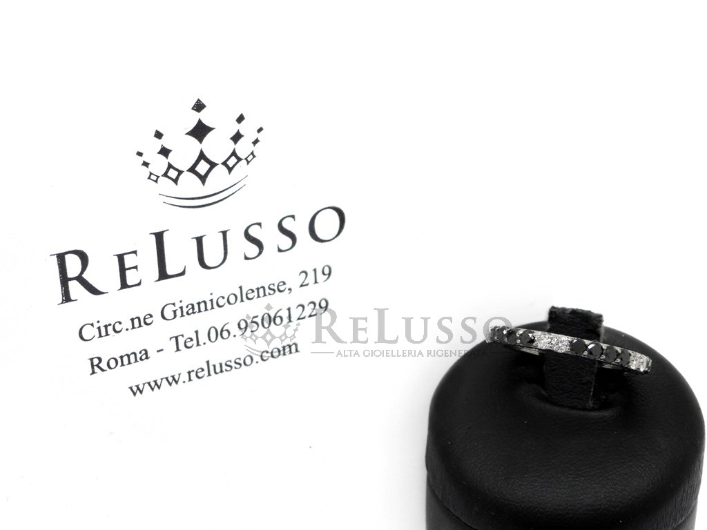 Anello veretta in oro bianco 18kt con 10 diamanti bianchi per un peso stimato di 0,40ct e 20 diamanti nerio per un peso stimato di 0,80ct. Il peso complessivo è di 1,20ct ca. L’anello è una misura 14 ITA.