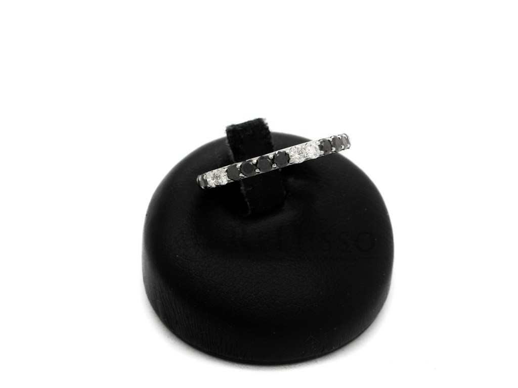 Anello veretta in oro bianco 18kt con 10 diamanti bianchi per un peso stimato di 0,40ct e 20 diamanti nerio per un peso stimato di 0,80ct. Il peso complessivo è di 1,20ct ca.