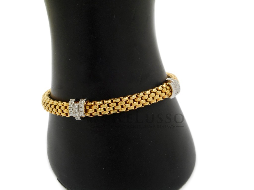 Bracciale FOPE in oro giallo con elementi in oro bianco e diamanti.
