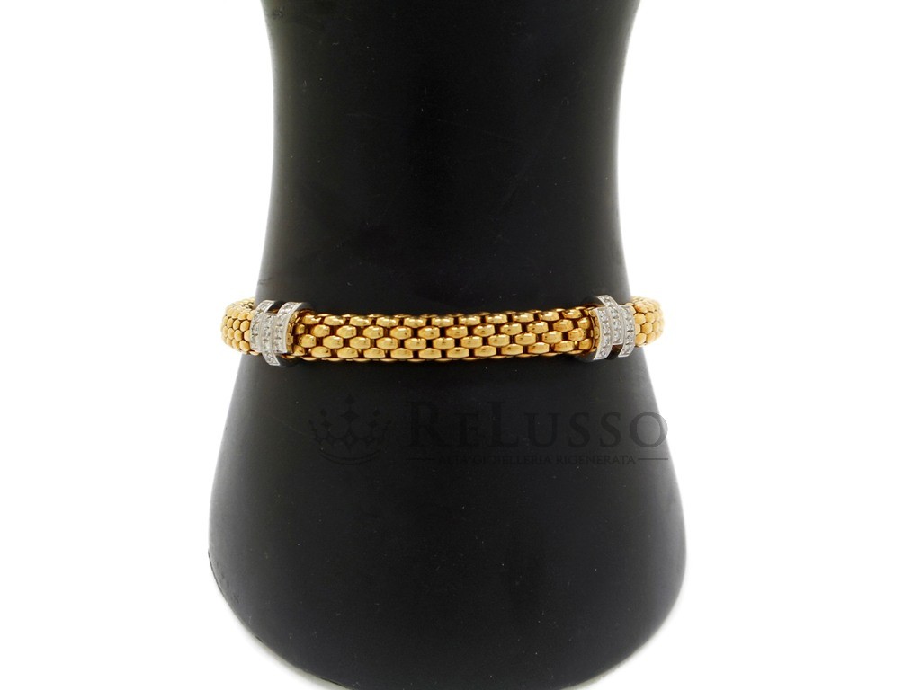 Bracciale FOPE in oro giallo 18kt impreziosito con elementi in oro bianco e diamanti taglio brillante dal peso complessivo stimato di 0,12ct.