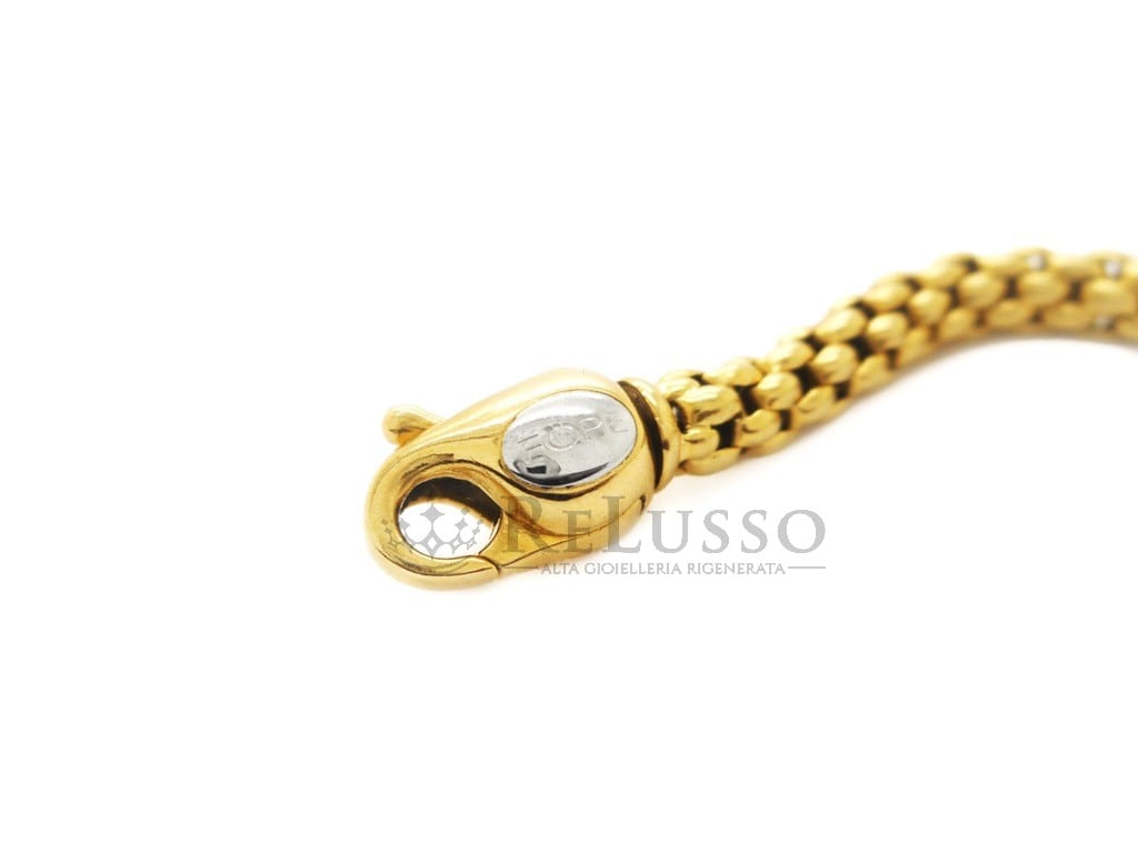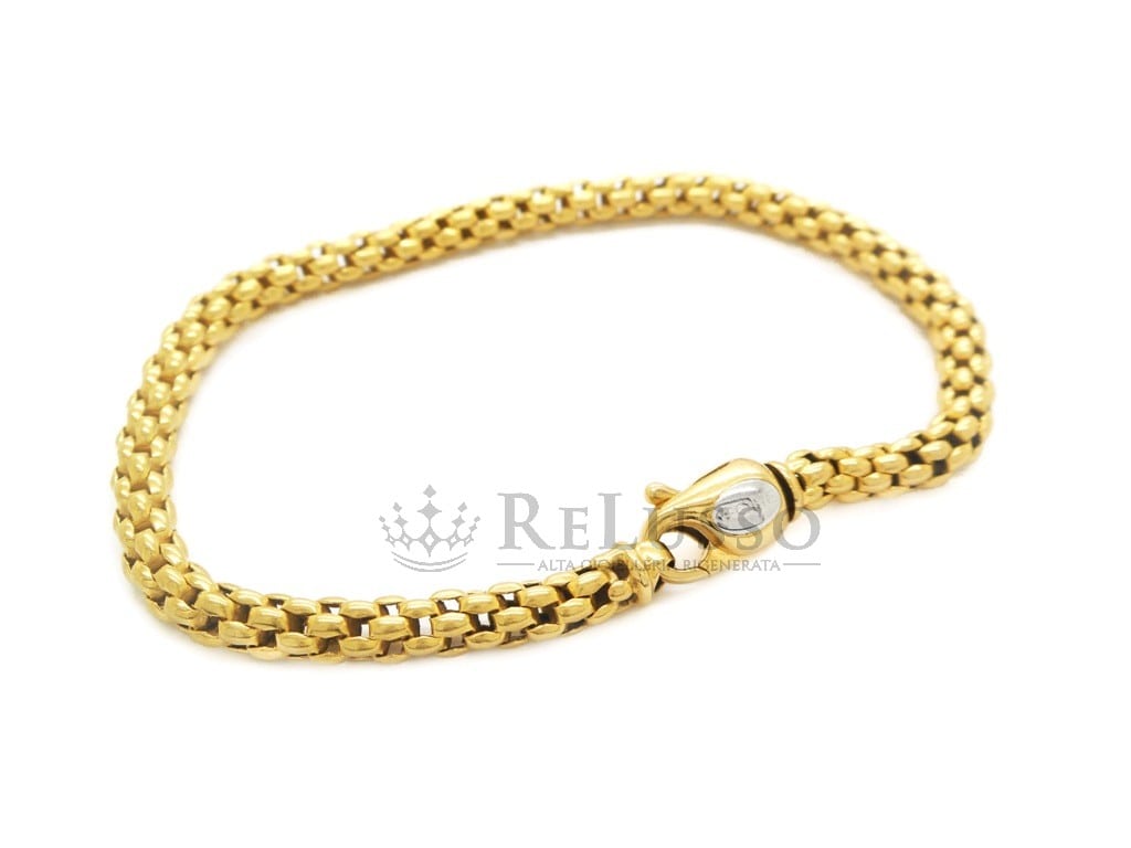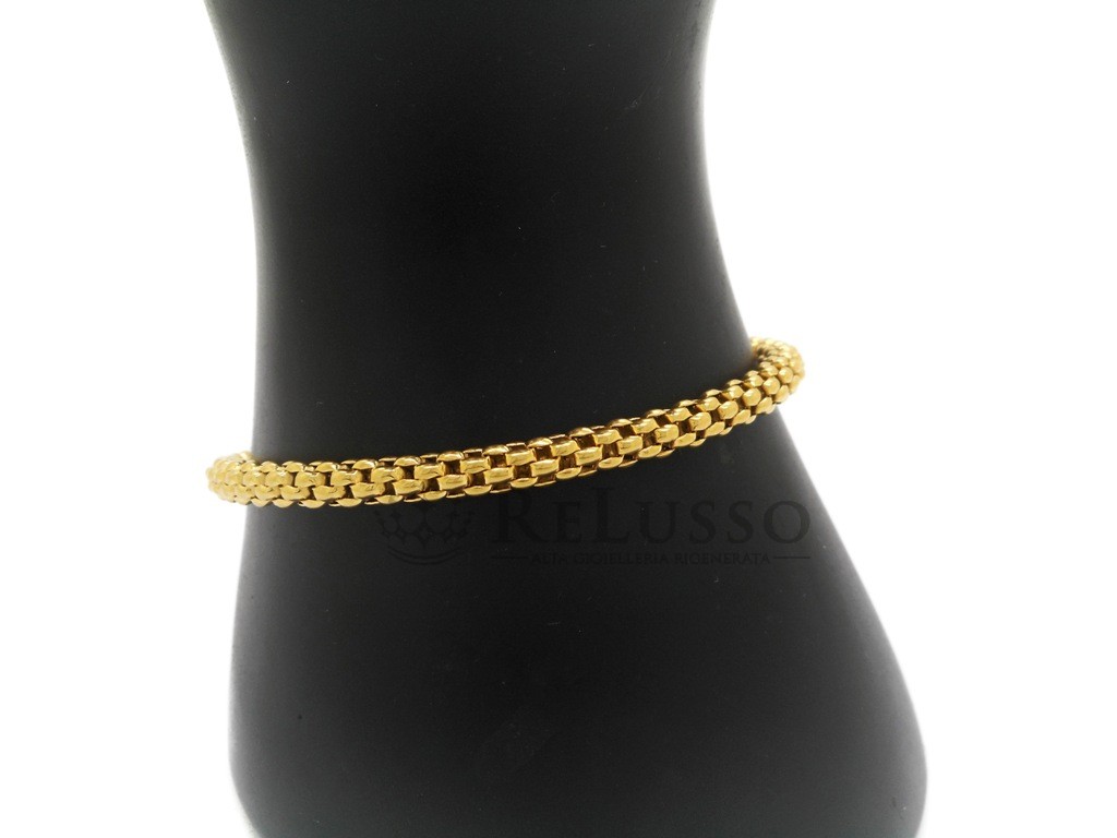 Bracciale FOPE flessibile in oro giallo 18kt, proveniente dalla collezione Prima. Il bracciale è lungo 18,50cm ed ha uno spessore di 4,00mm.