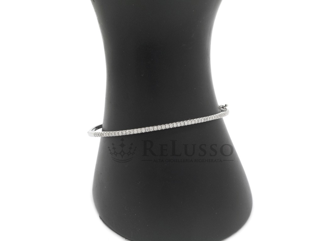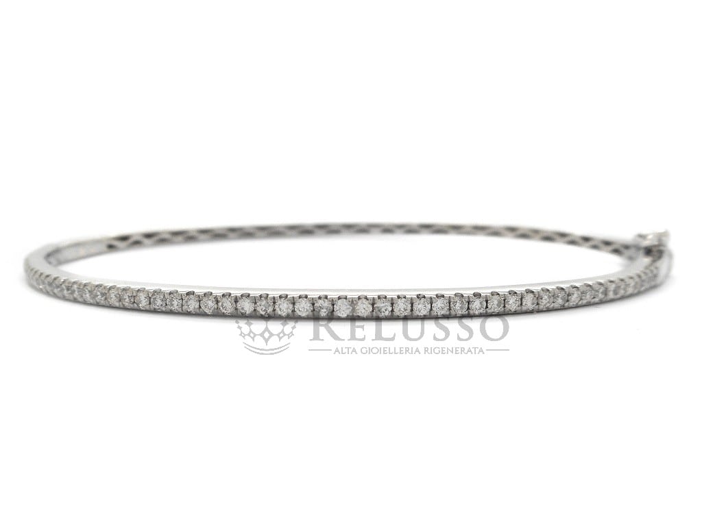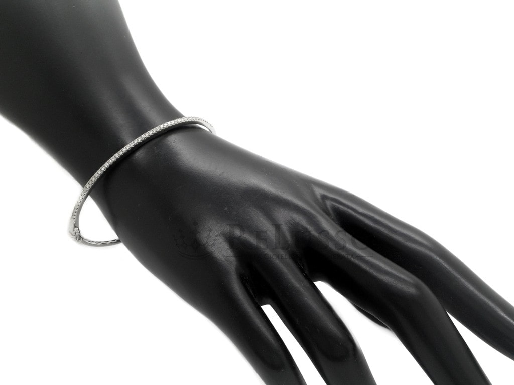 Bracciale rigido in oro bianco 14kt con una fila di diamanti taglio brillante formata da 49 pietre per un peso di 0,60ct.
