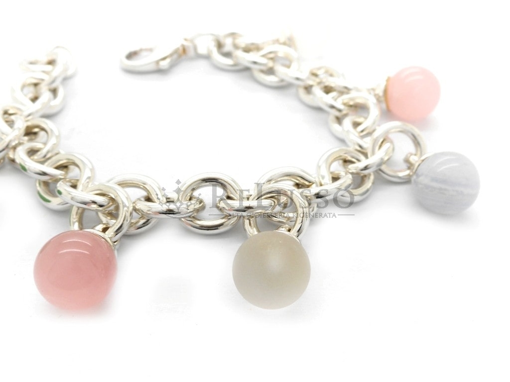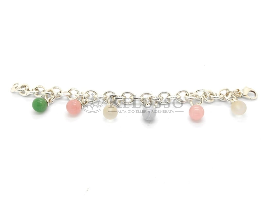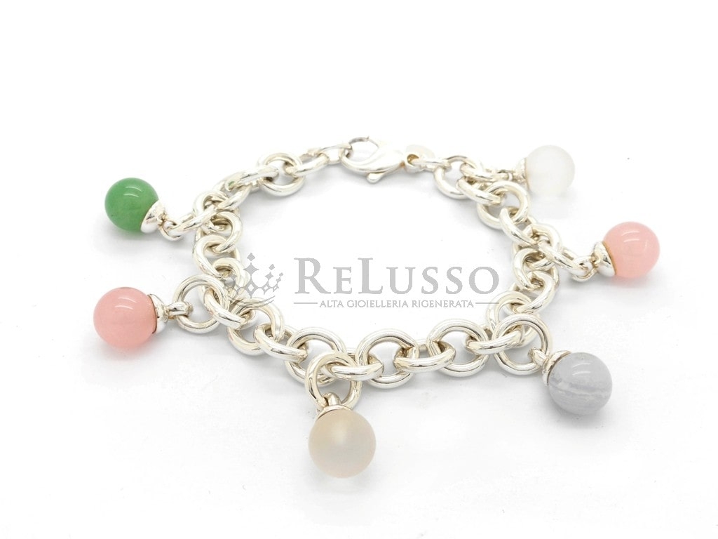 Bracciale Tiffany & Co. in argento sterling 925, proveniente dalla collezione Fascination Ball con 6 charm pendenti (multi dangle) con pietre dure colorate. Lunghezza 19,00cm.