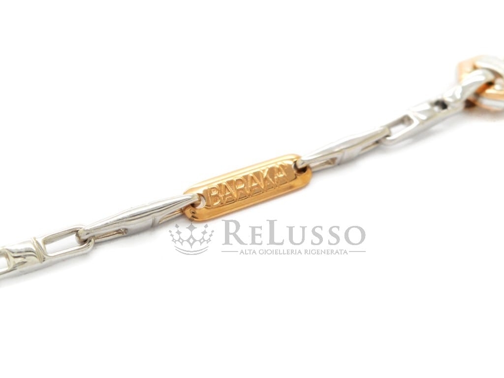 In assolvimento degli oneri di correttezza e trasparenza, la Gioielleria ReLusso® dichiara espressamente di NON rivestire la qualifica di concessionario ufficiale BARAKA’ e di non intrattenere rapporti commerciali diretti con la societa’ titolare del marchio. Tutti i gioielli BARAKA’ esposti sono acquistati da privati e rimessi a nuovo mediante l’esclusivo metodo rigenerante LuxuRigen™. In ogni caso ReLusso garantisce l’assoluta originalità e la perfetta integrità dei beni commercializzati e le relative garanzie. I collegamenti ai siti delle case produttrici presenti in questa e nelle altre pagine del sito, hanno l’esclusivo scopo di agevolare i visitatori del nostro sito nella consultazione dei prodotti da noi commercializzati nel rispetto della legge vigente, ma in relazione ai quali NON rivestiamo la qualità di rivenditori autorizzati. Le case produttrici a cui i collegamenti rimandano sono le esclusive titolari del marchio dei prodotti e licenziatarie dello stesso. ReLusso non fa parte di BARAKA’ concessionari ufficiali e BARAKA’ rivenditori autorizzati. Il Prezzo di Listino del nuovo indicato su alcuni gioielli, corrisponde al “prezzo di listino al pubblico” riportato sul sito ufficiale della maison o su quelli dei loro rivenditori ufficiali. Viene riportato per fornire una indicazione del valore del prodotto, ma in alcuni negozi il prezzo effettivo potrebbe risultare più basso. Tutti i nostri gioielli sono venduti con l’escusiva confezione regalo ReLusso. La scatola originale del gioiello è fotografata esclusivamente a scopo illustrativo e potrebbe non essere disponibile. Per maggiori informazioni vi preghiamo di leggere le nostre FAQ – Domande frequenti.