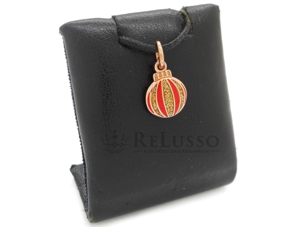 Charm Dodo Pallina natalizia in oro rosa 375 (9kt) con smalto rosso e smalto glitterato.