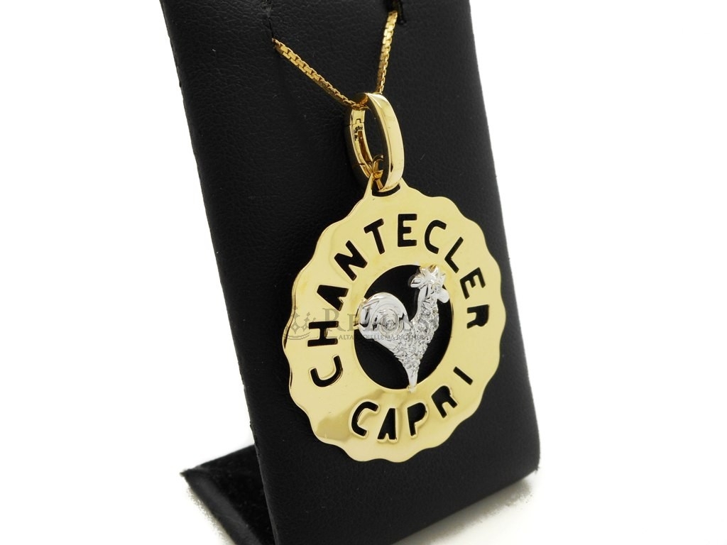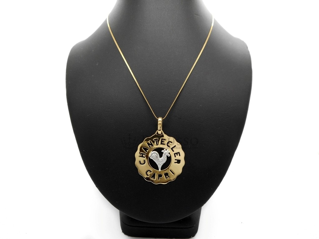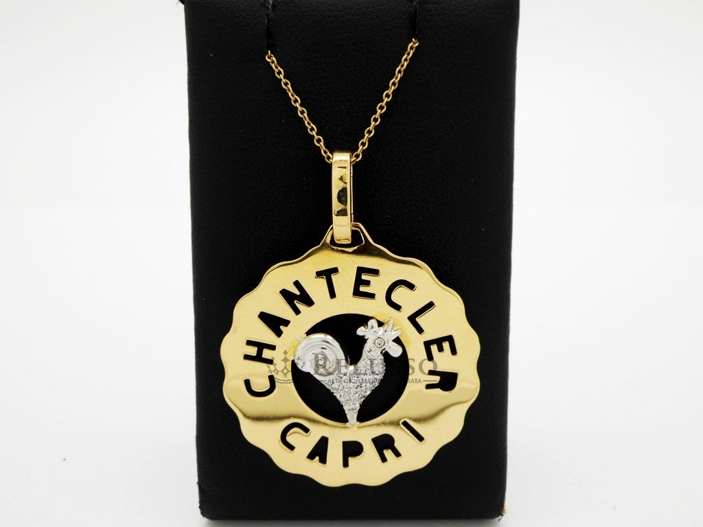 Ciondolo Chantecler Logo Gallo medio in oro e diamanti.