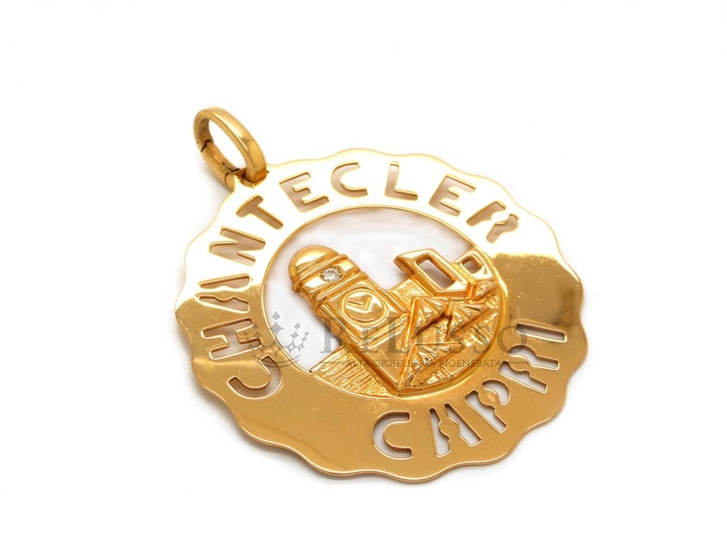 Ciondolo Chantecler Logo Piazzetta grande in oro giallo e diamante.