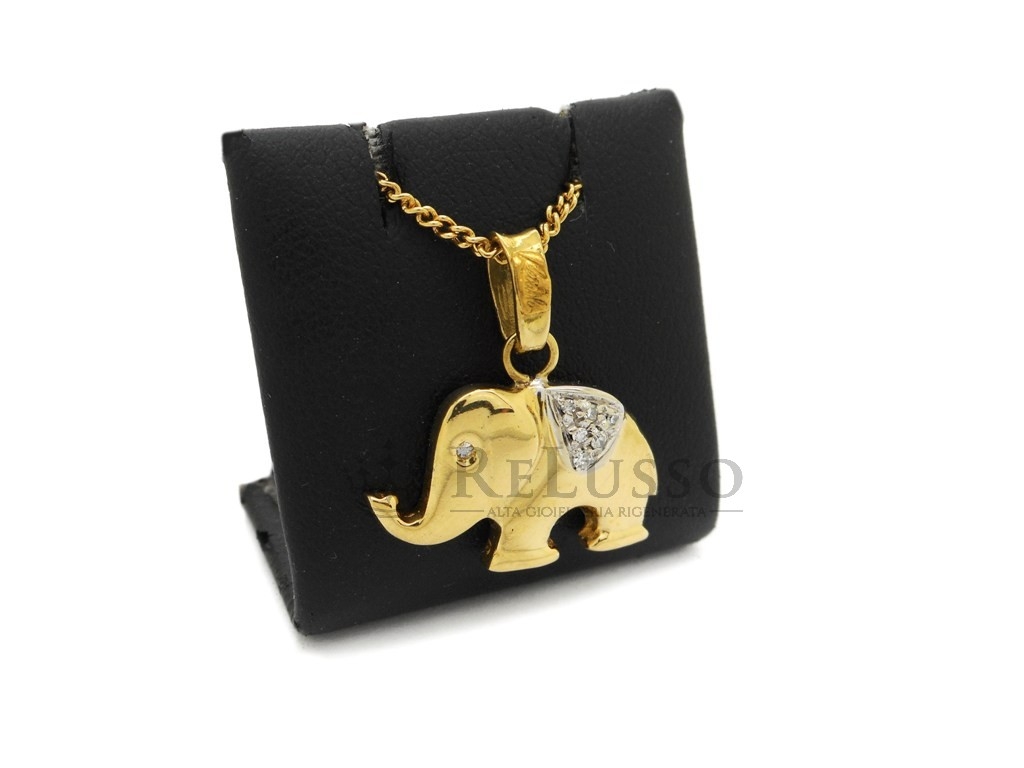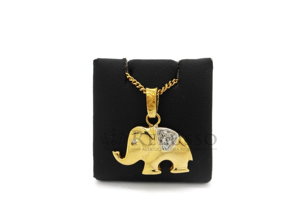 Ciondolo ReCarlo Elefante in oro giallo e diamanti