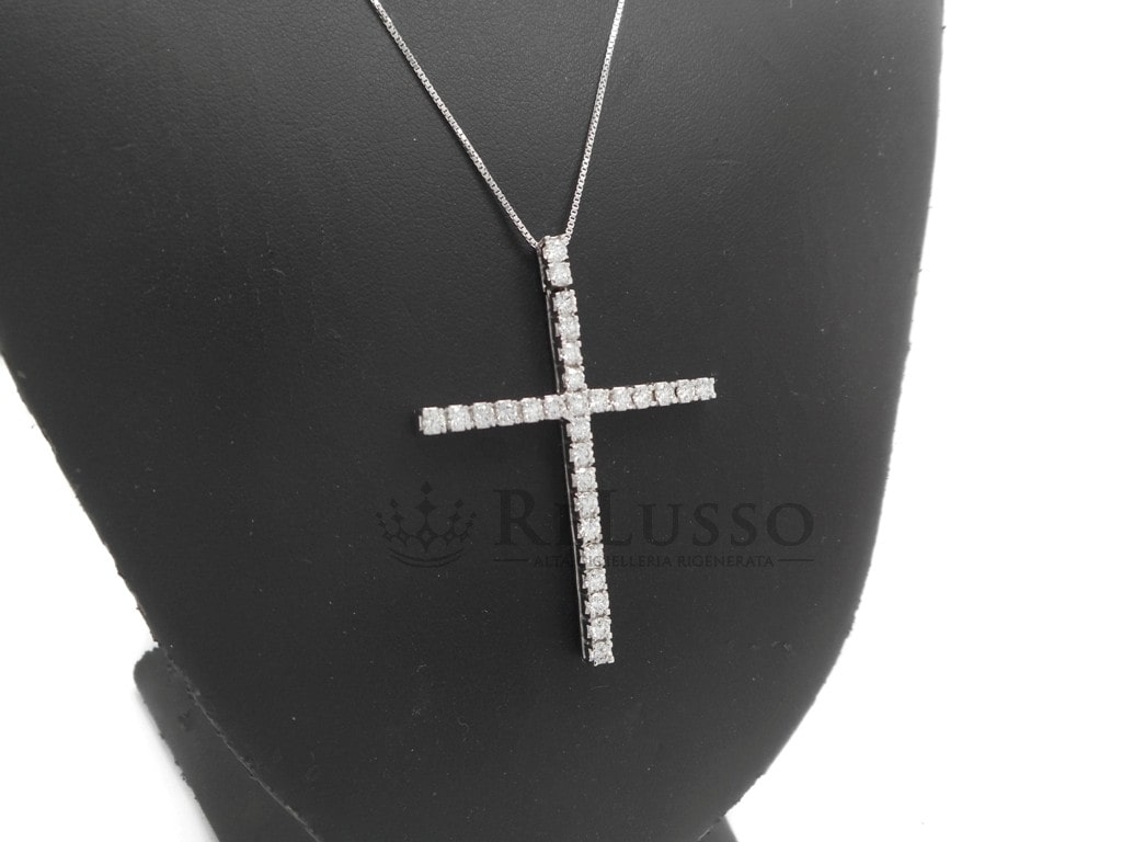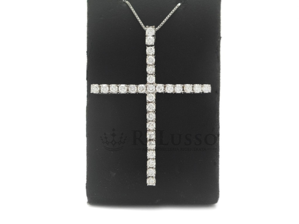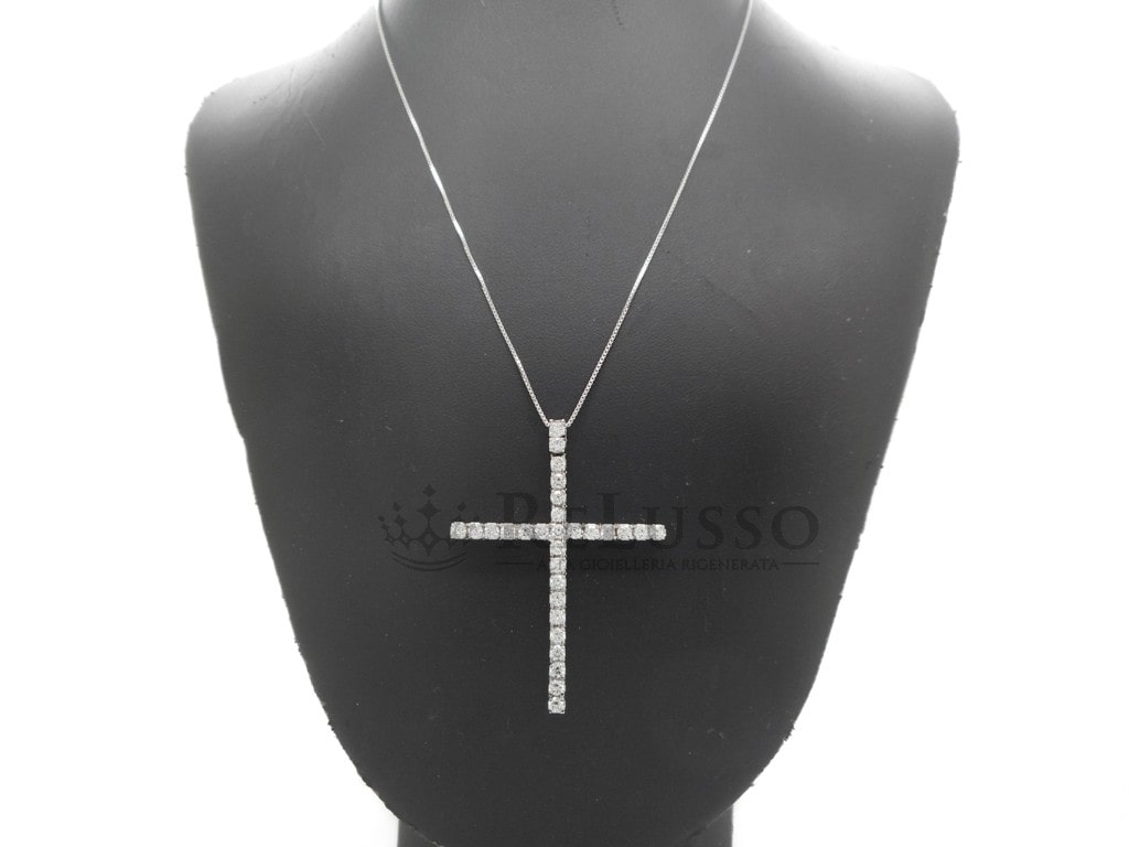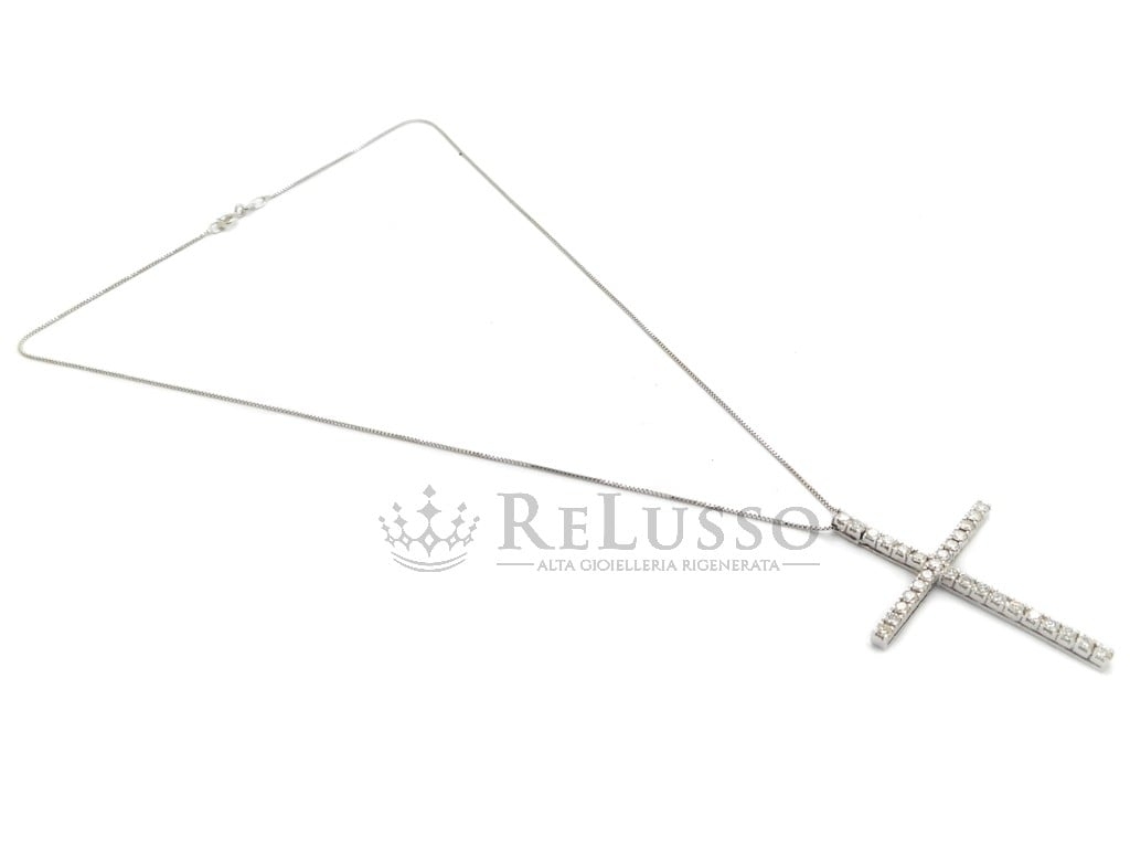 Collana con croce con 1,45ct di diamanti G-H color in oro bianco 18kt.