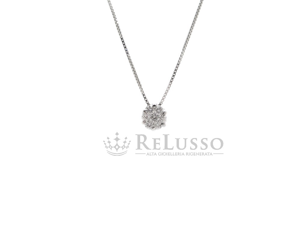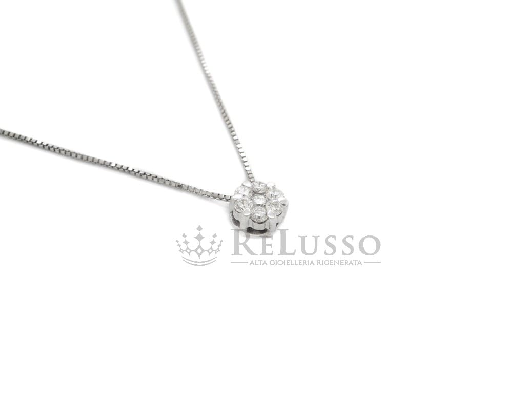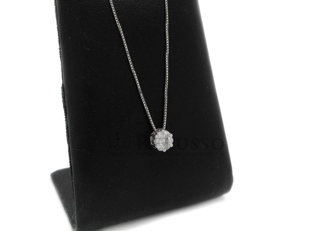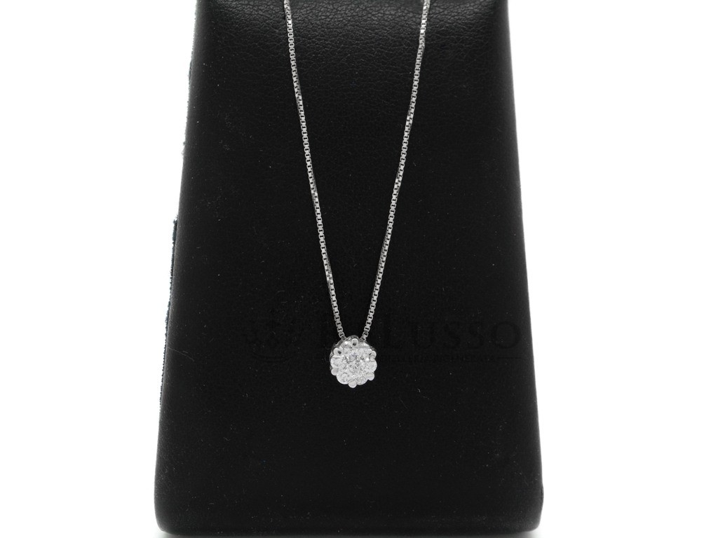 Collana punto luce in oro bianco 18kt con sette diamanti taglio brillante incastonati su montatura Magic per un peso complessivo stimato di 0,15ct.