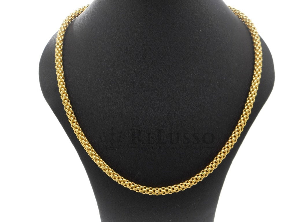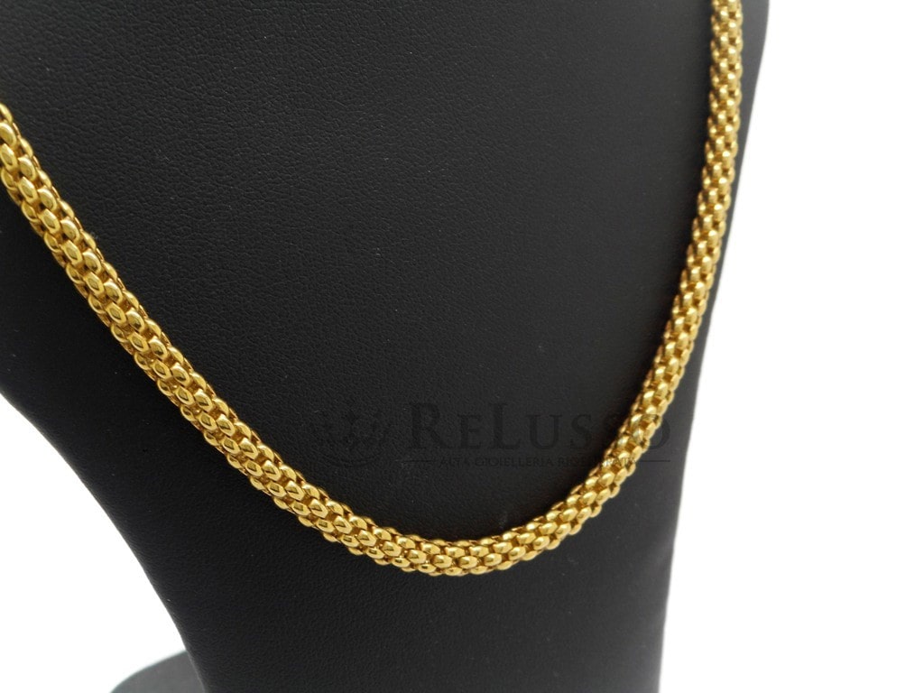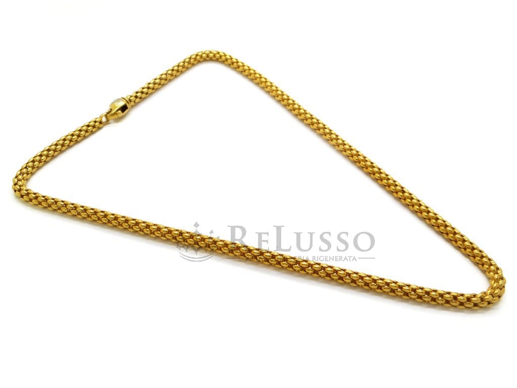 Collana Fope proveniente dalla Collezione Solo in oro giallo18kt con maglia Novecento e chiusura a moschettone “rotor ” che permette alla maglia di girare attorno al collo senza arrotolarsi. La collana è lunga 43,00cm e pesa 24,00grammi.
