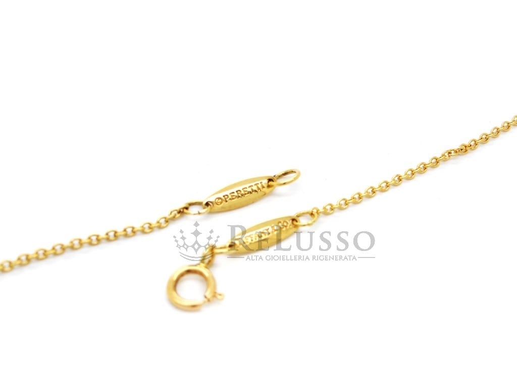 Collana pendente di Tiffany & co, in oro giallo 18kt, proveniente dalla celebre collezione Bean® di Elsa Peretti®. La collana è lunga 40,50cm, il ciondolo è largo 14mm.