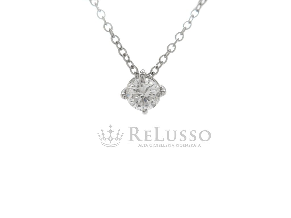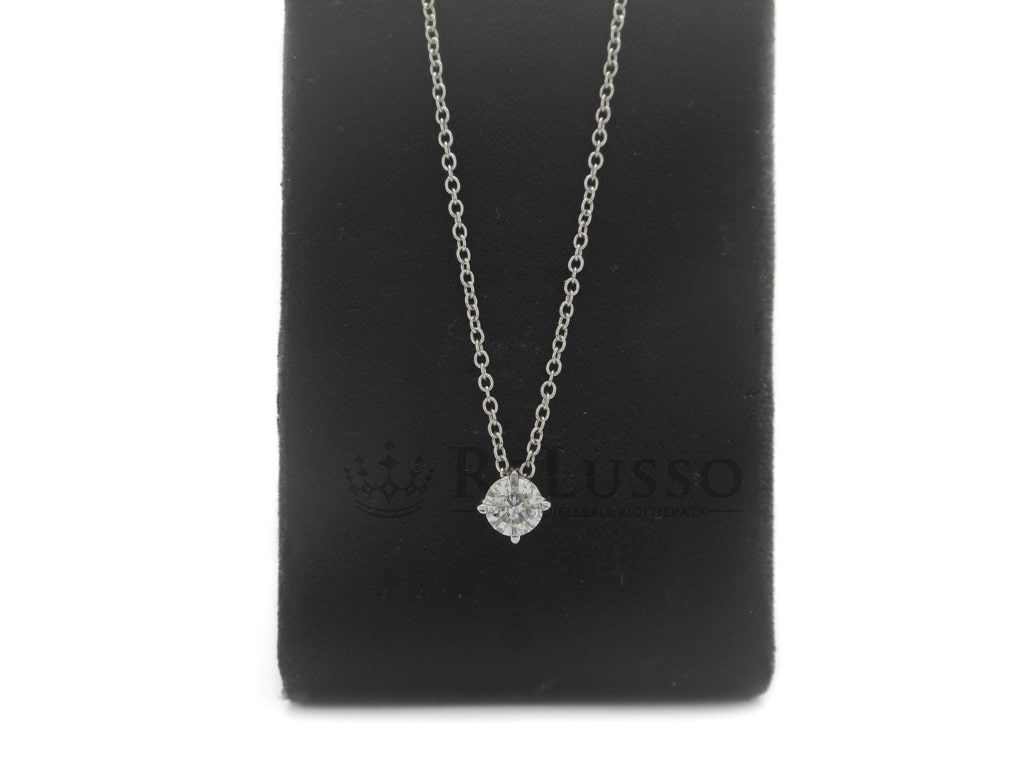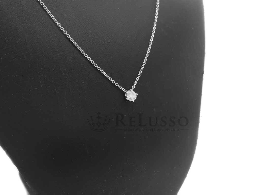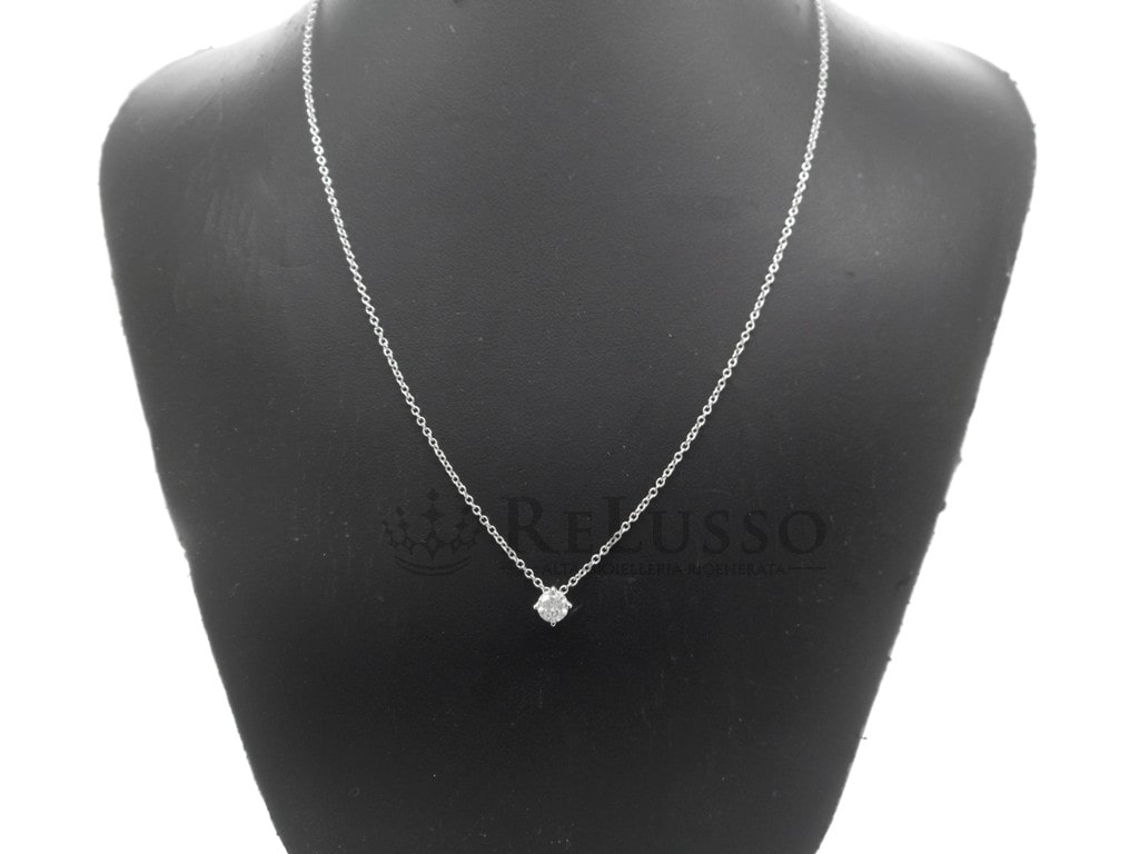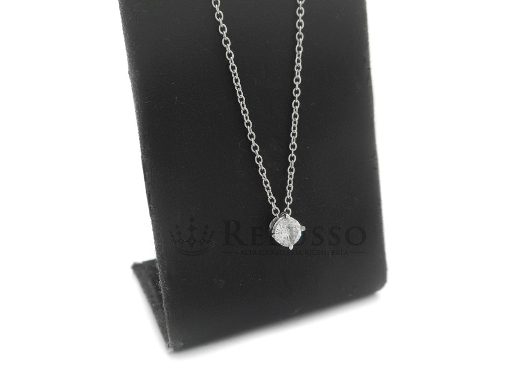 Collana punto luce in oro bianco 18kt con diamante taglio brillante rotondo dal peso stimato di 0,35ct, colore H-I, purezza SI, incastonato su griffe a 4 punte.