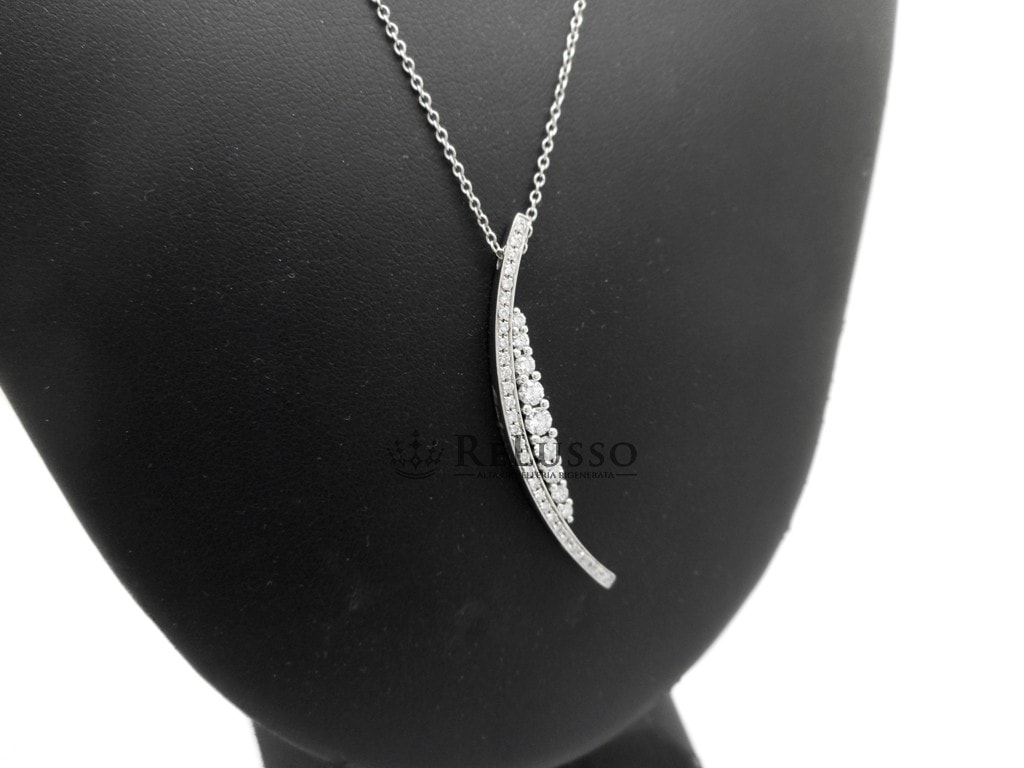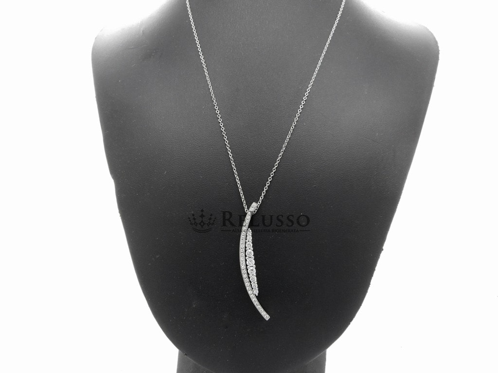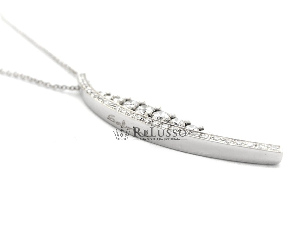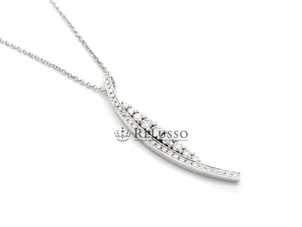 Collana Salvini in oro bianco 18kt con pendente a forma di mezzaluna diamanti taglio brillante rotondo per un peso complessivo stimato di 0,60ct. La collana è lunga 51,00cm regolabile a 42,00cm.