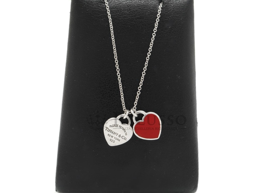 Collana Tiffany & Co. con doppio ciondolo a cuore smaltato rosso, misura mini