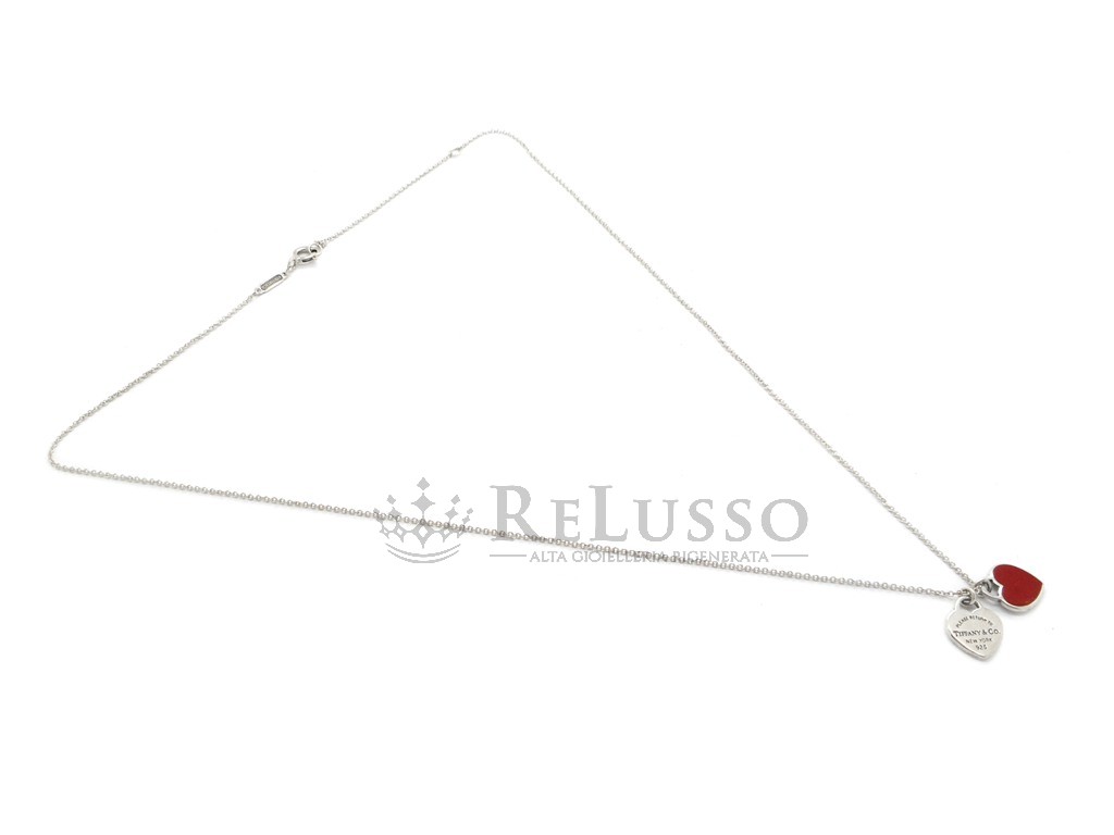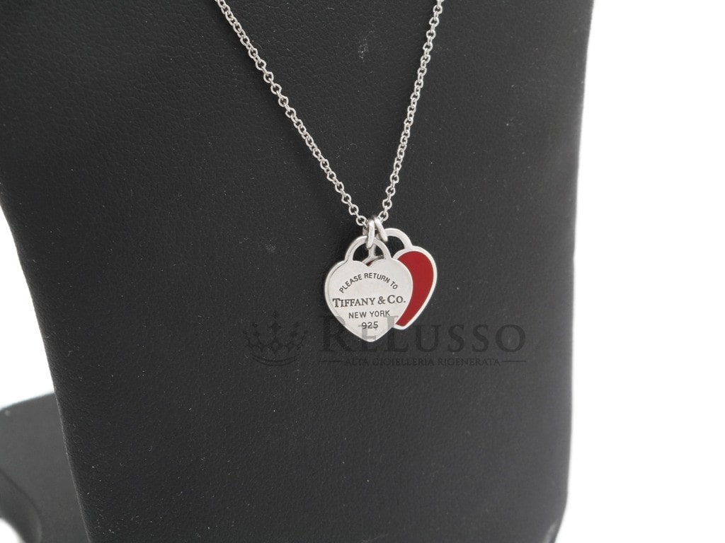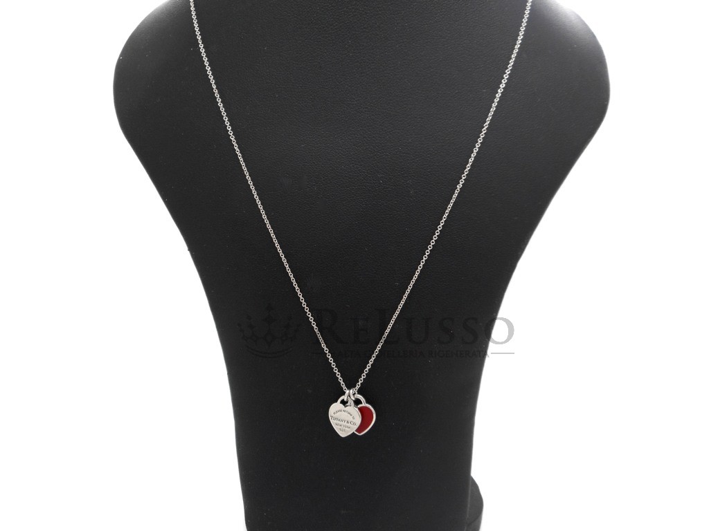 Collana Tiffany & co. in argento sterling 925 con Pendente Double Heart Tag mini smaltato rosso, proveniente dalla celebre collezione return to Tiffany™.