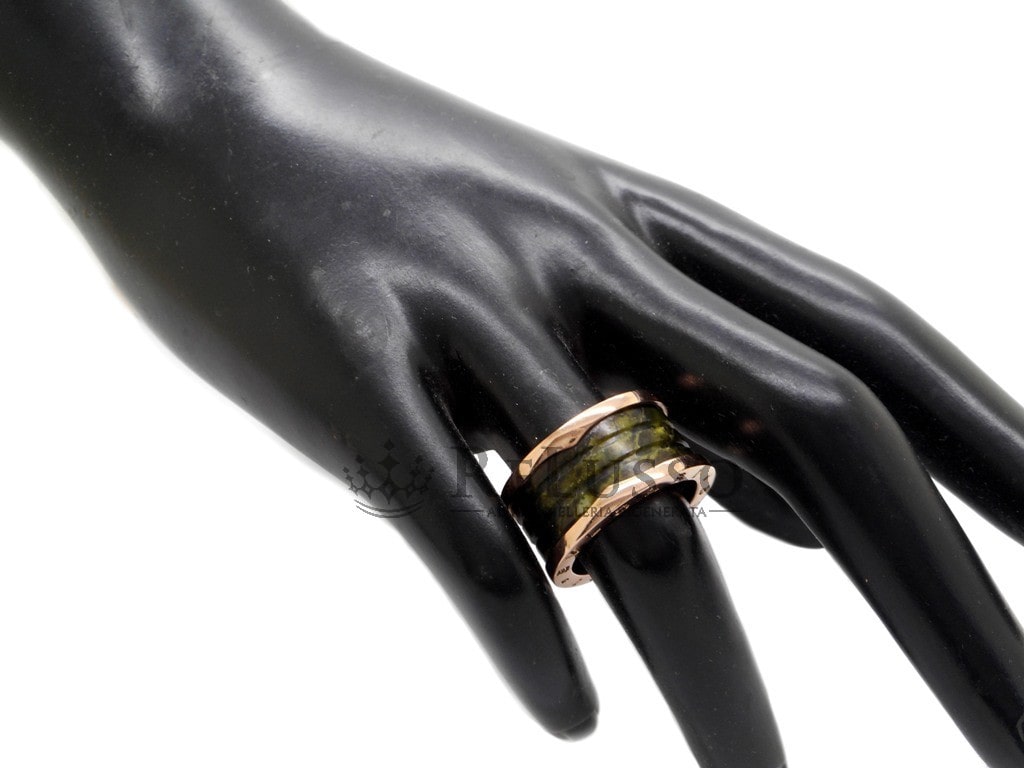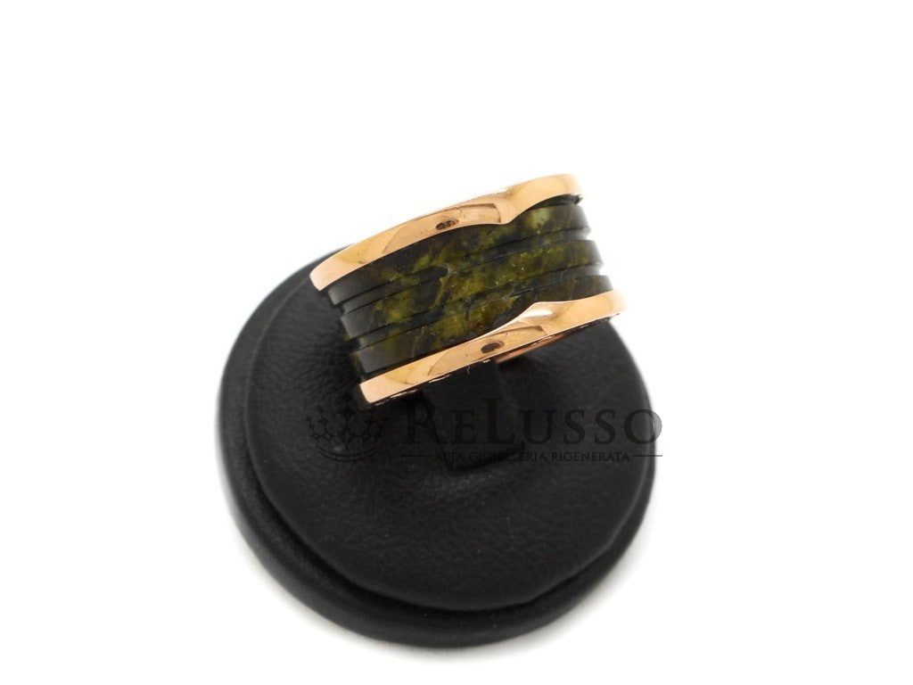 Bague Bulgari en or rose 18 carats et marbre vert, issue de la célèbre collection B.Zero1 4 anneaux. La ligne de bagues la plus emblématique de Bulgari !