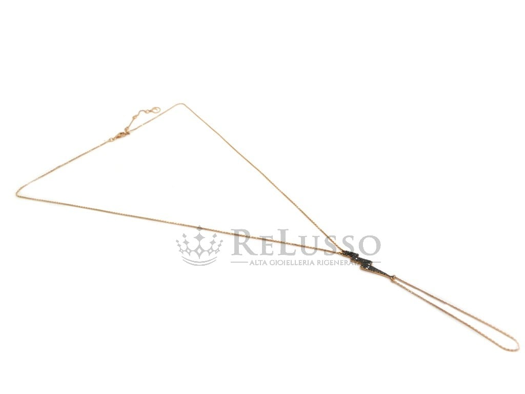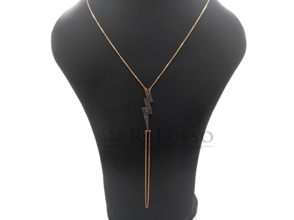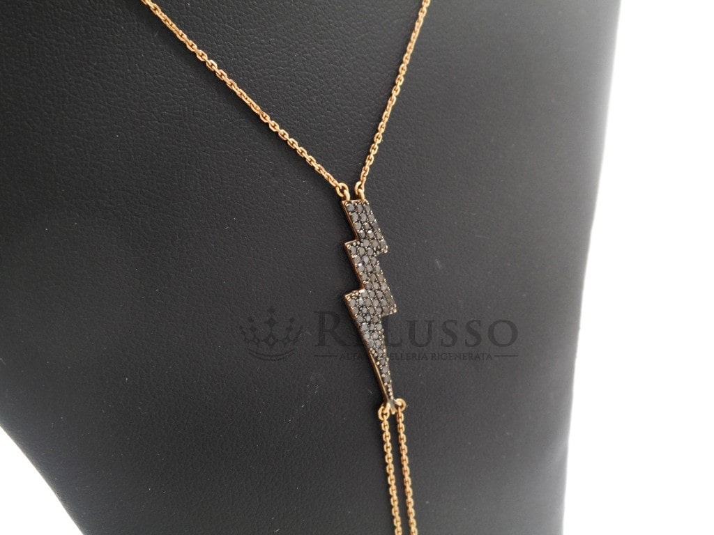 Halskette mit der Signatur Bee Goddess aus 14-karätigem Roségold mit einem blitzförmigen Anhänger, verziert mit einem Pavé aus schwarzen Diamanten mit einem Gesamtgewicht von 0,44 ct. Die Halskette ist 56,00 cm lang (verstellbar).