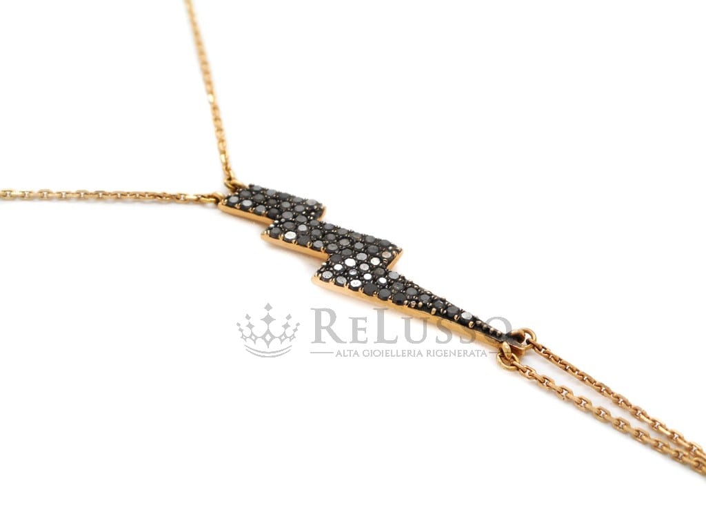 Halskette mit der Signatur Bee Goddess aus 14-karätigem Roségold mit einem blitzförmigen Anhänger, verziert mit einem Pavé aus schwarzen Diamanten mit einem Gesamtgewicht von 0,44 ct.