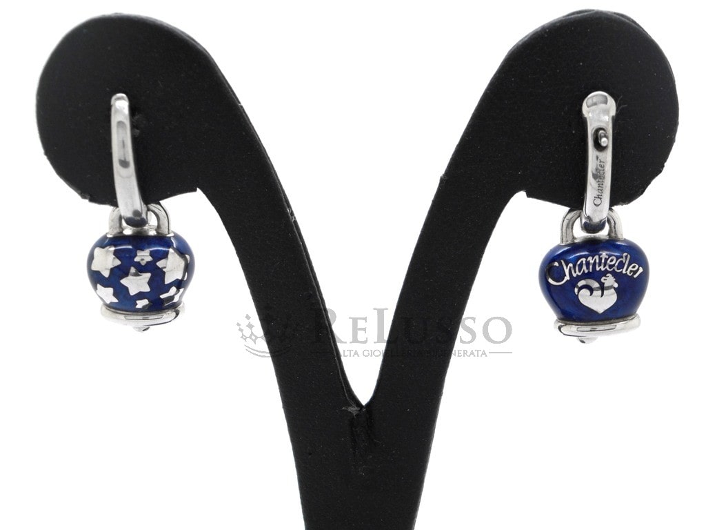 Chantecler Campanella-Ohrringe aus Silber und blauer Emaille aus der Et Voilà-Kollektion.