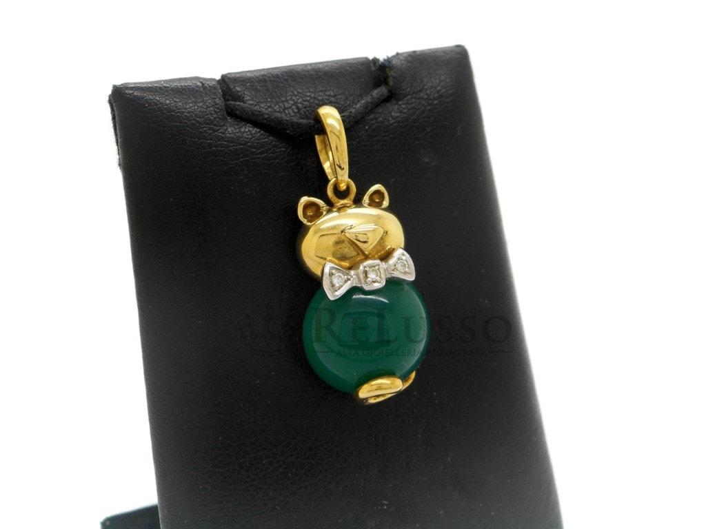 Damiani-Anhänger mit grünem Achat und Diamanten in 18 Karat Gelbgold.