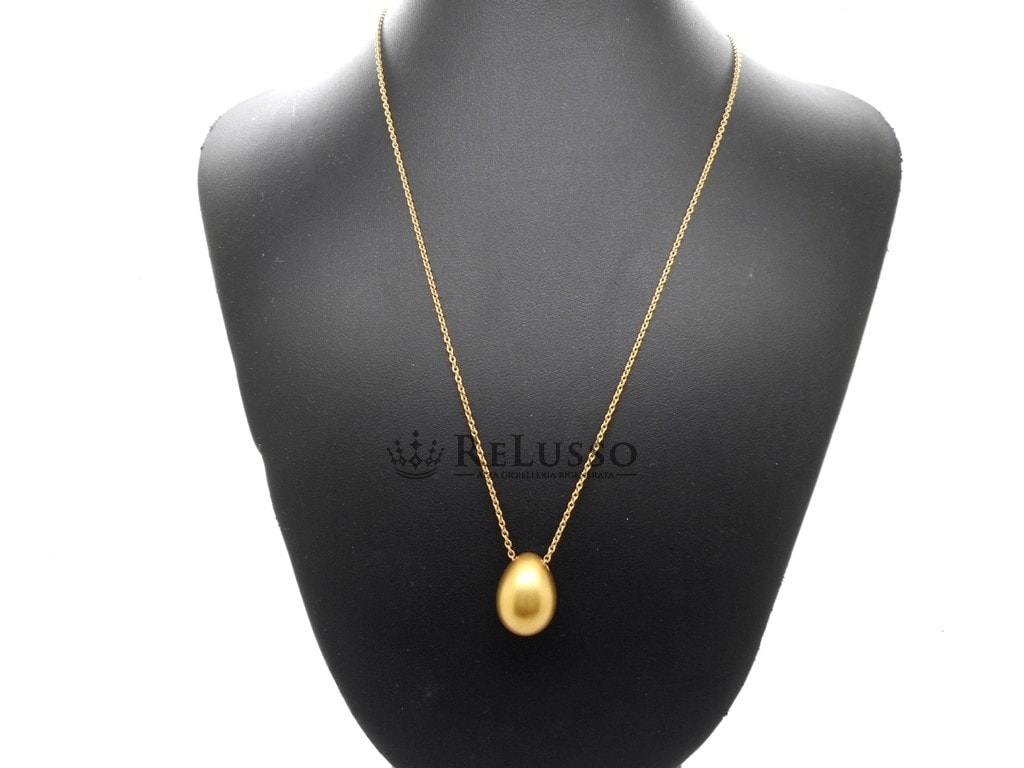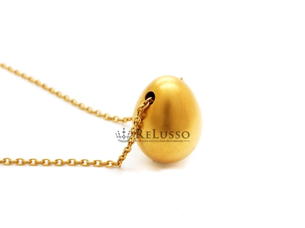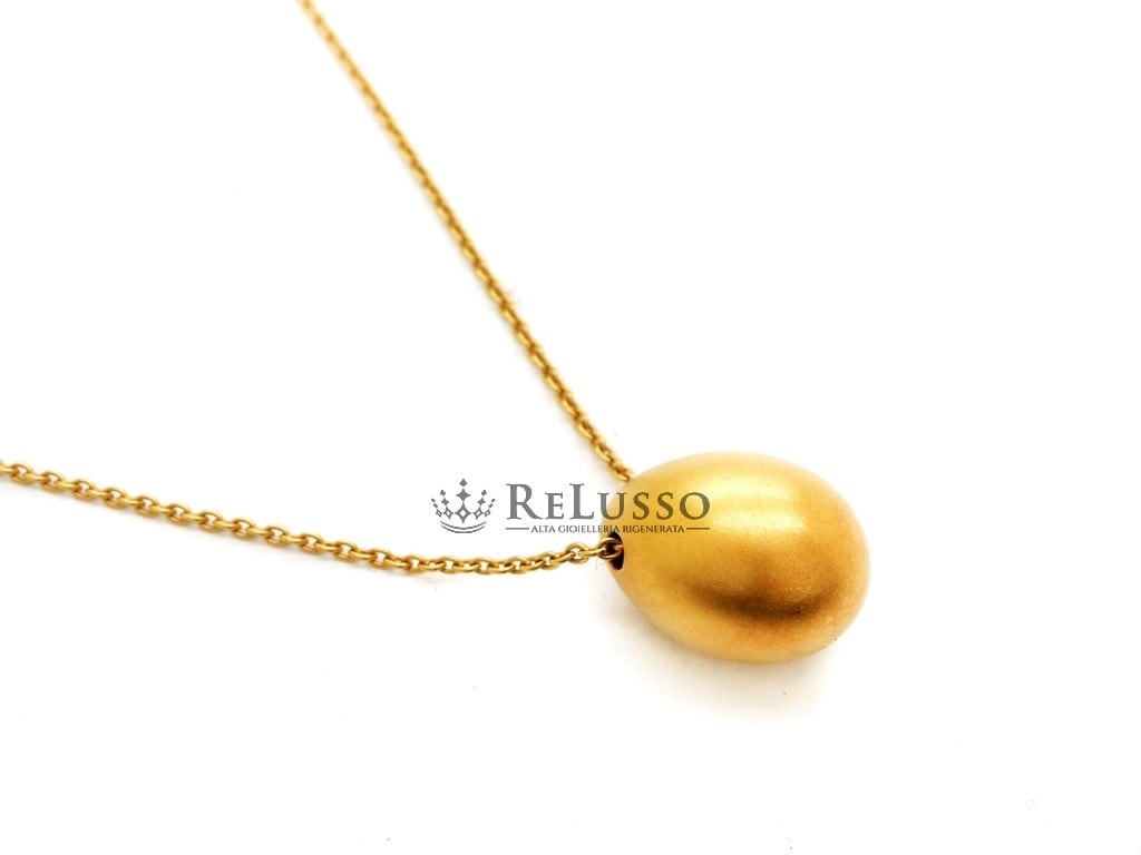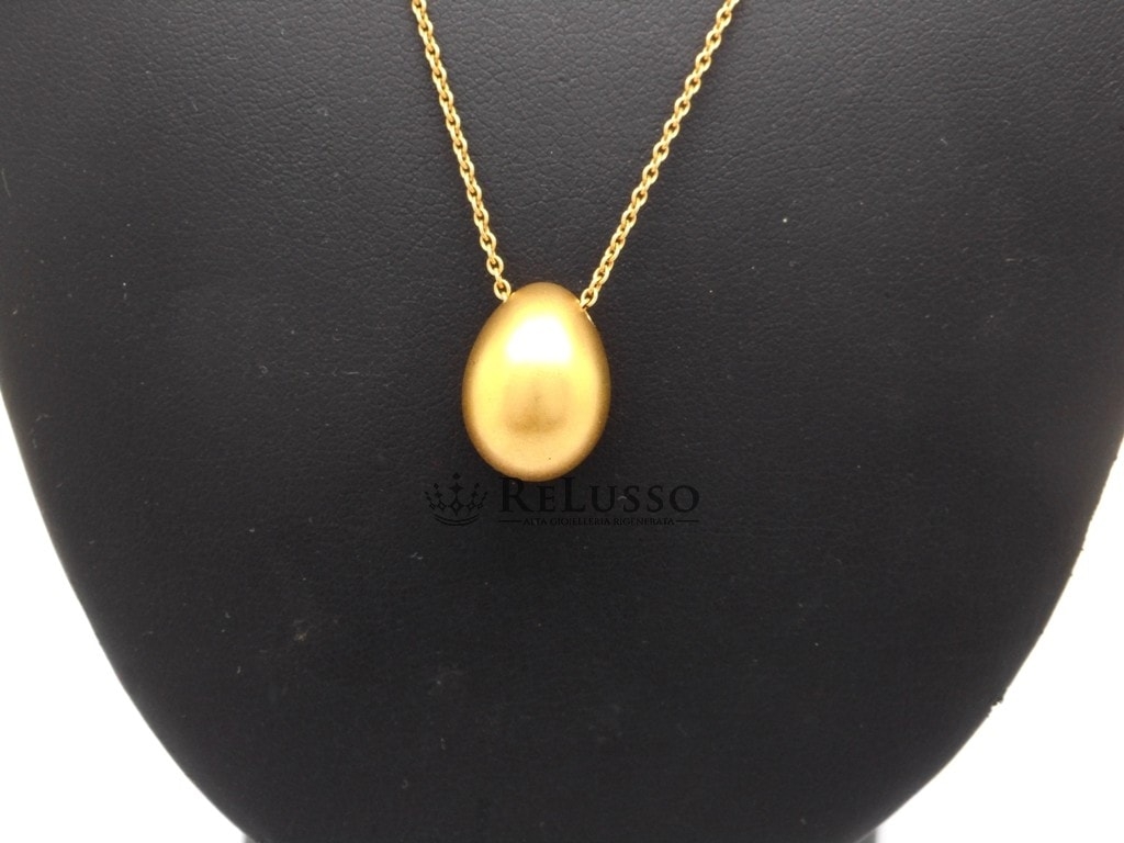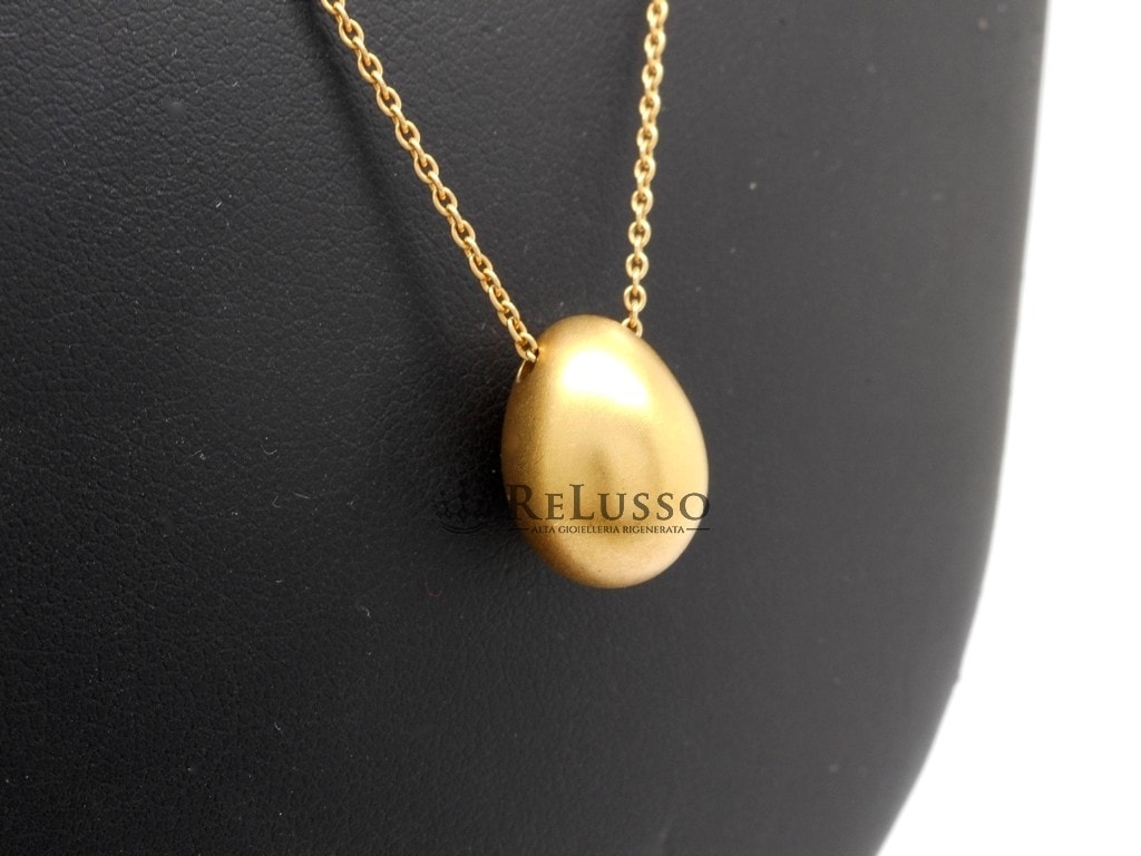 Pomellato-Halskette mit Ei-Anhänger aus sandgestrahltem 18-karätigem Gelbgold