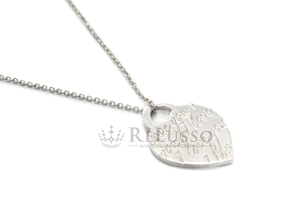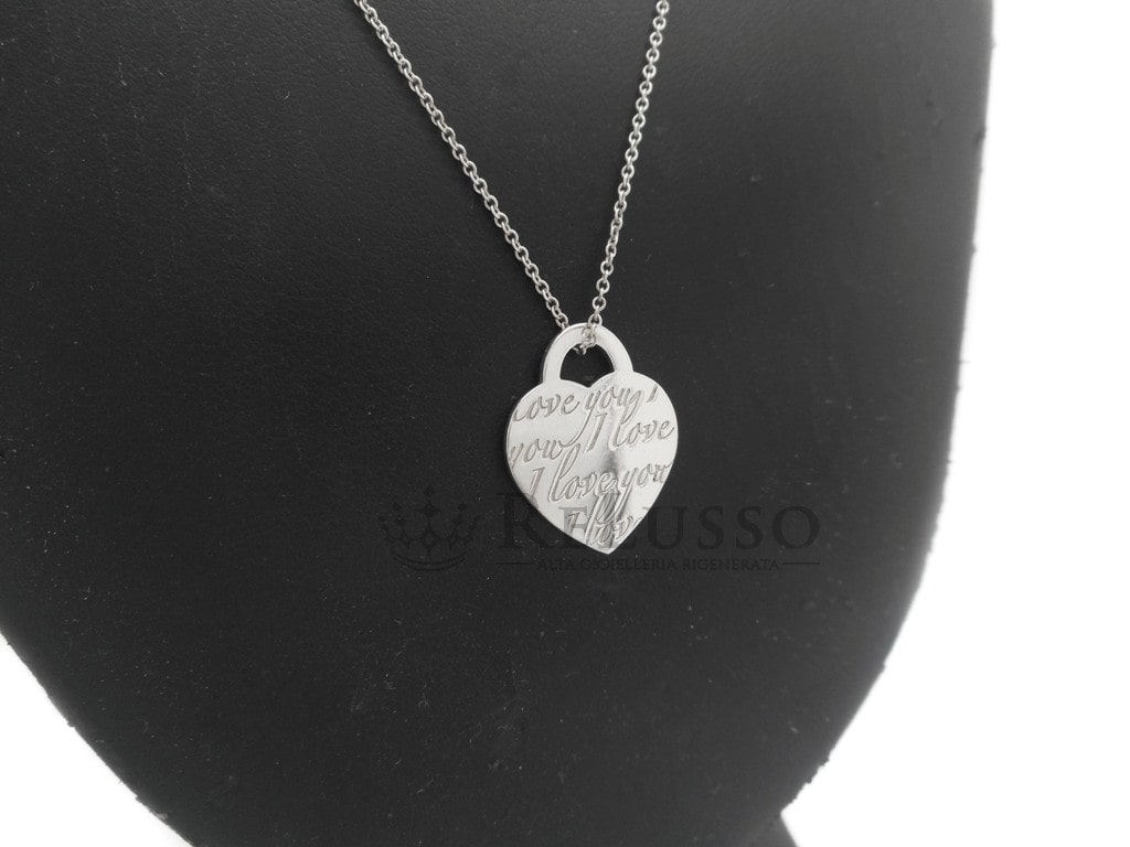 Tiffany & Co. Notes-Halskette mit Herzanhänger „I love you“, klein.