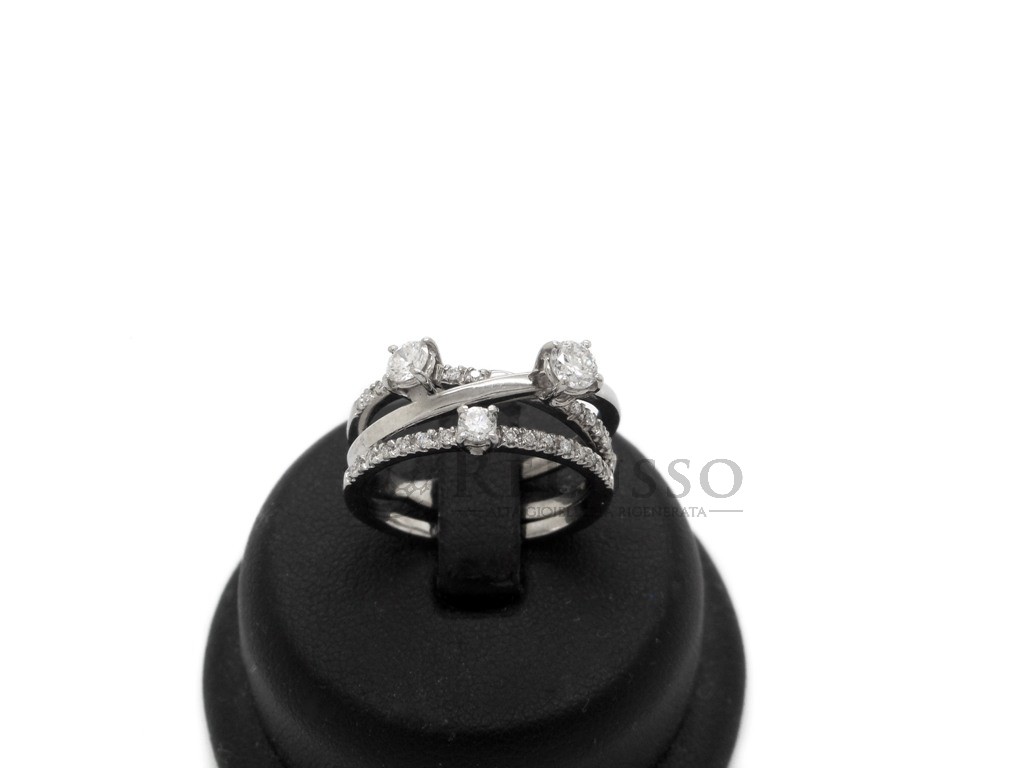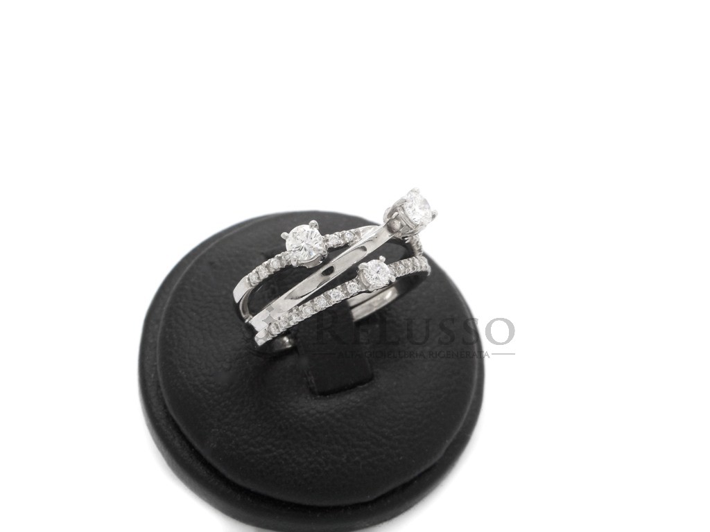 Alfieri & St. John ring in 18kt white gold from the 1937 collection with three circles embellished with 29 diamonds for an estimated total weight of 0.30ct, size 14 ITA.