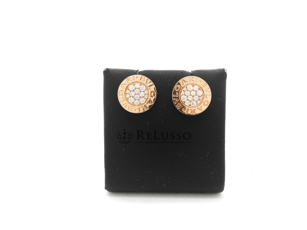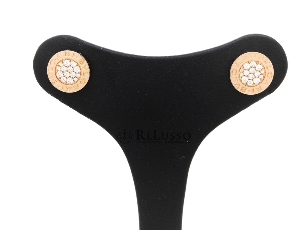 Bulgari earrings in 18kt rose gold with pavé diamonds, from the famous Bvlgari-Bvlgari collection. The diameter of the earrings is 0.90cm.