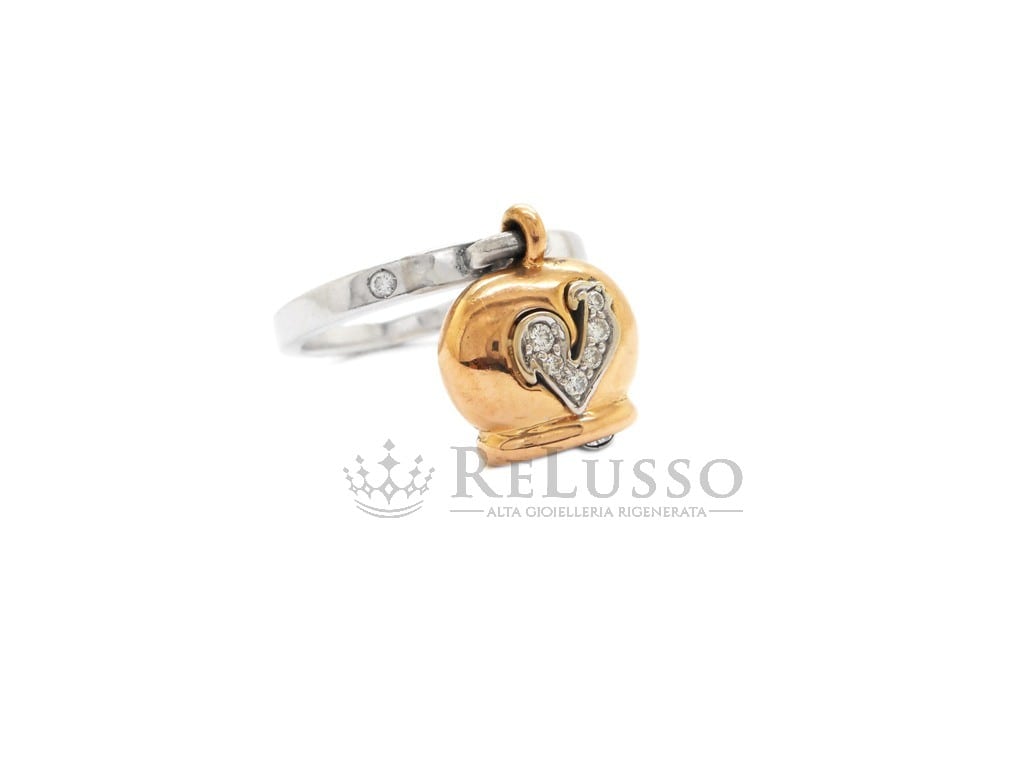 Chantecler Campanelle ring in 18kt rose and white gold with diamonds and a rooster in pavé diamonds. Size 11 ITA (Slightly modifiable).