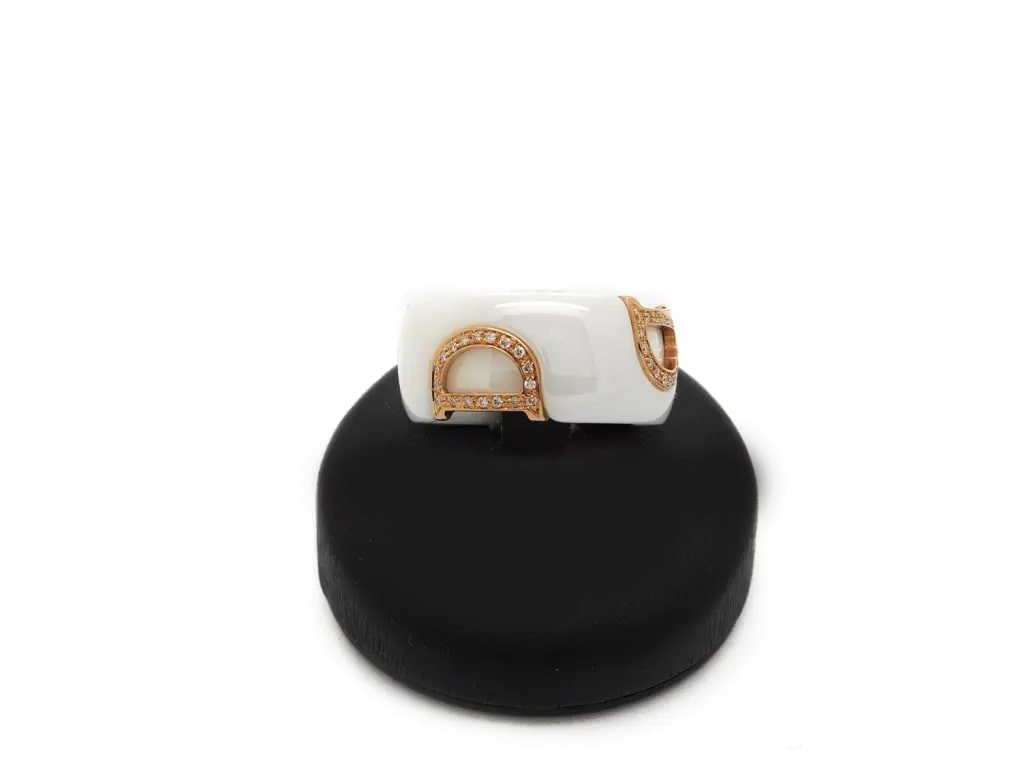 Damiani ring D.Icon collection in white ceramic, pink gold and diamonds.