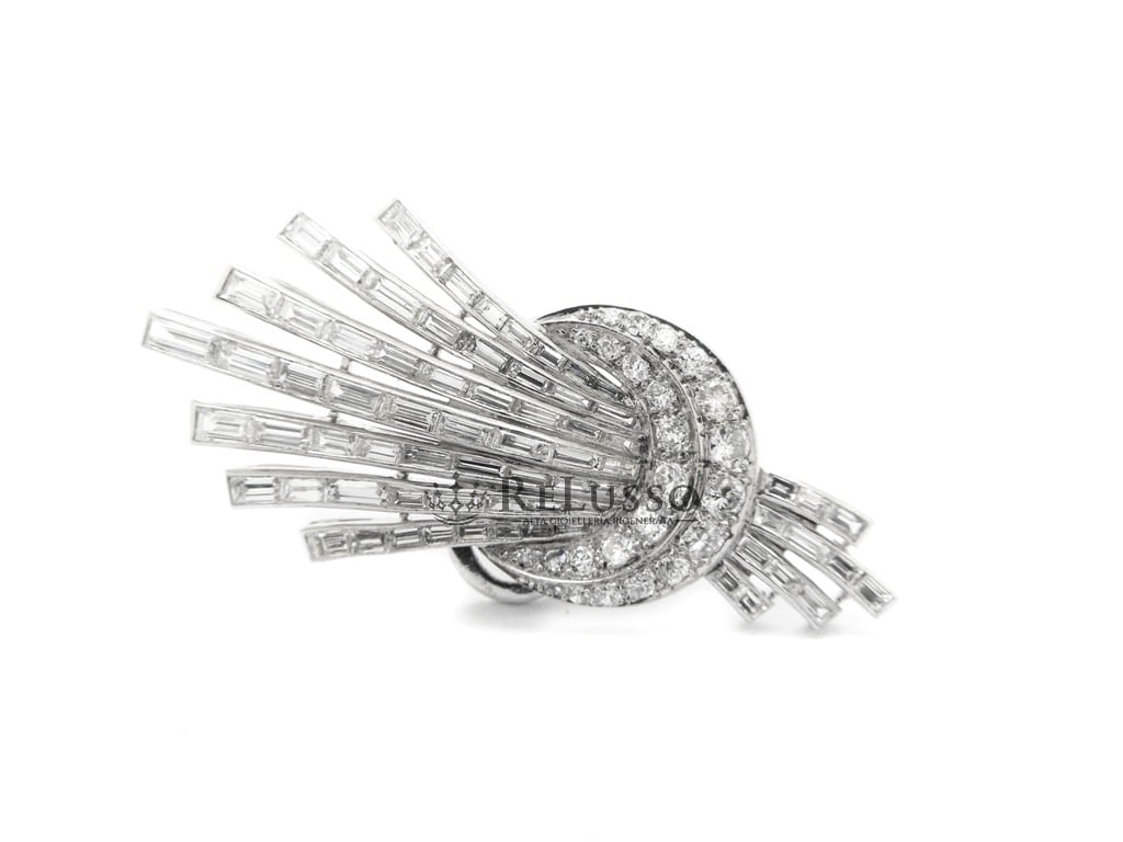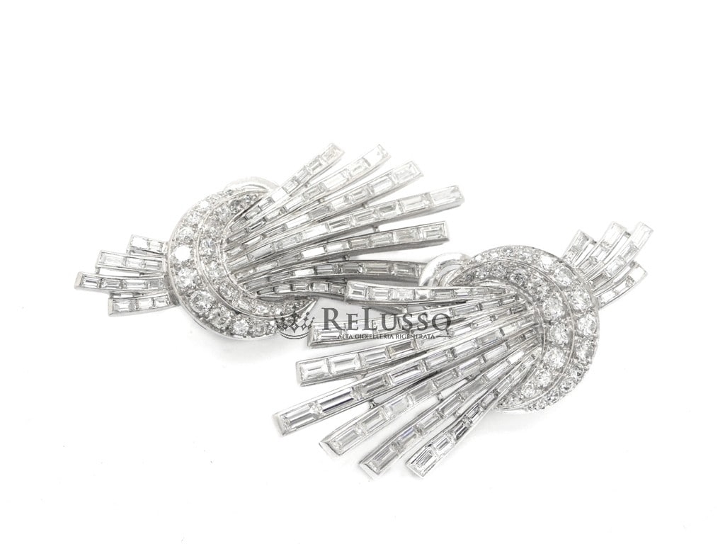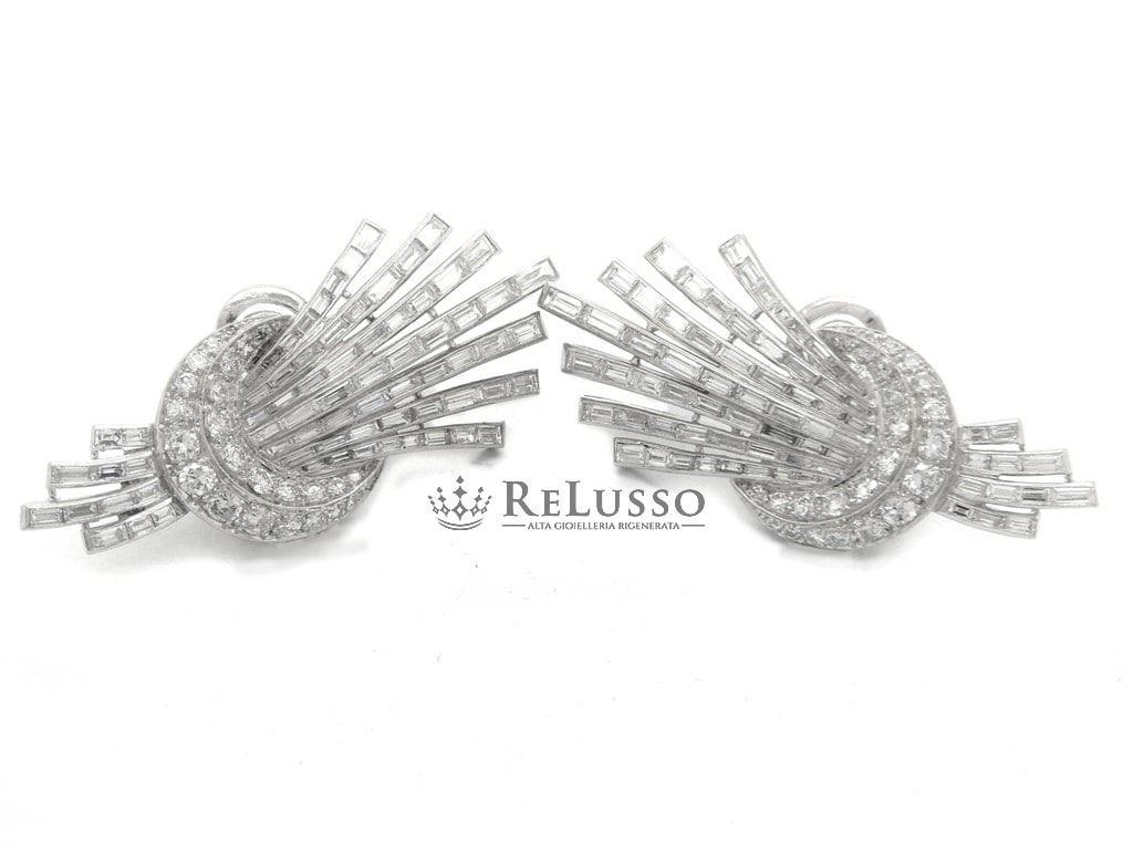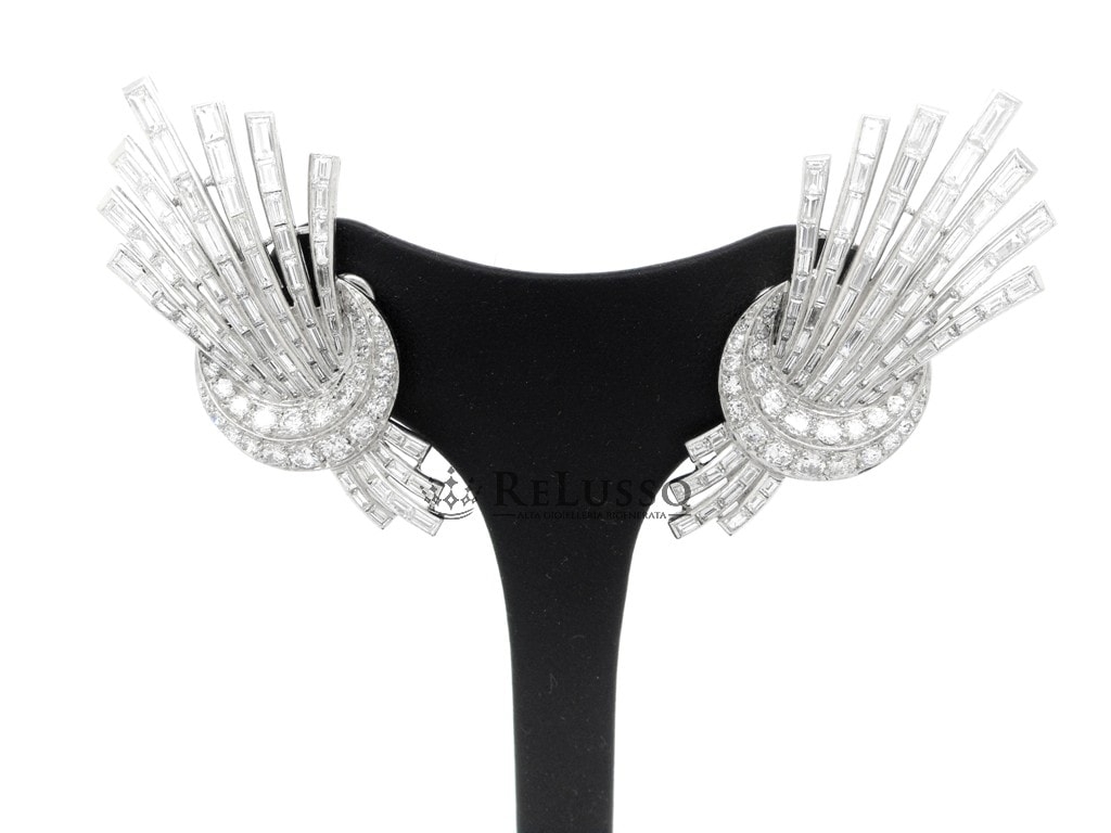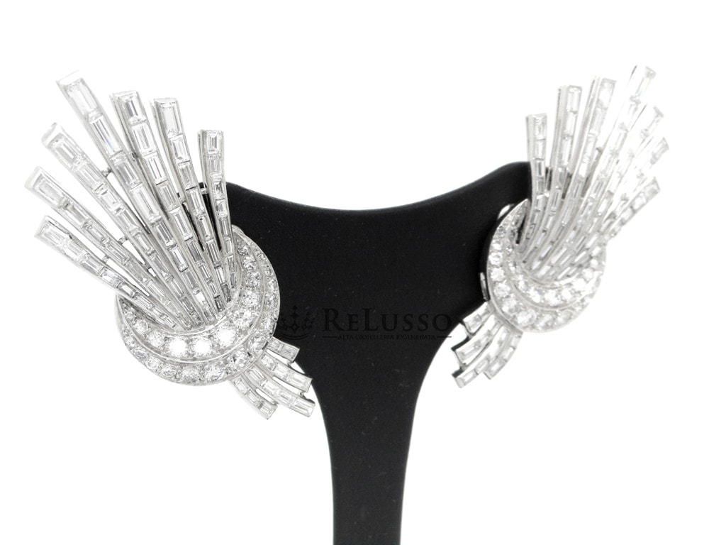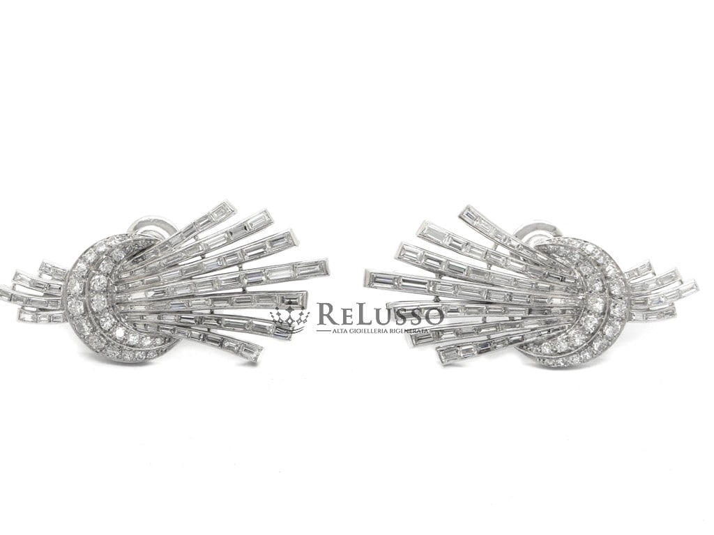 Earrings in 18kt white gold with 142 baguette cut diamonds for a total estimated weight of 9.30ct and 48 brilliant and huit-huit cut diamonds for a total weight of 2.76ct.