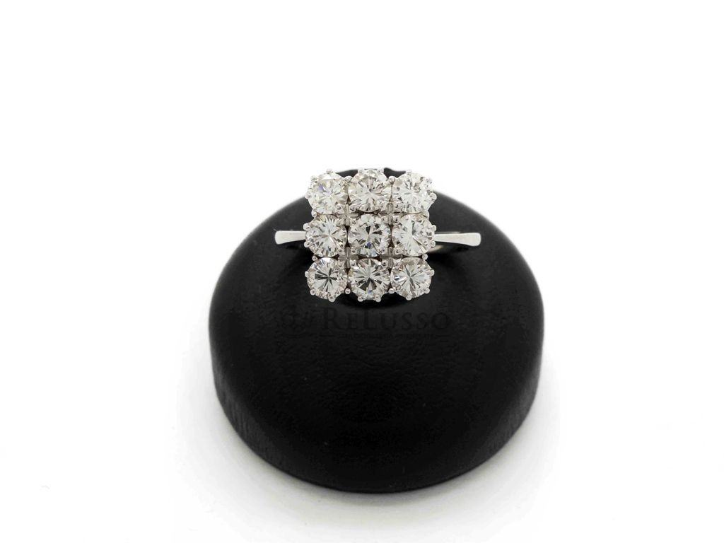 Ring in 18kt white gold in square shape, with 9 round brilliant cut diamonds for a total estimated weight of 2.50ct, color G-H clarity IF-VS1.