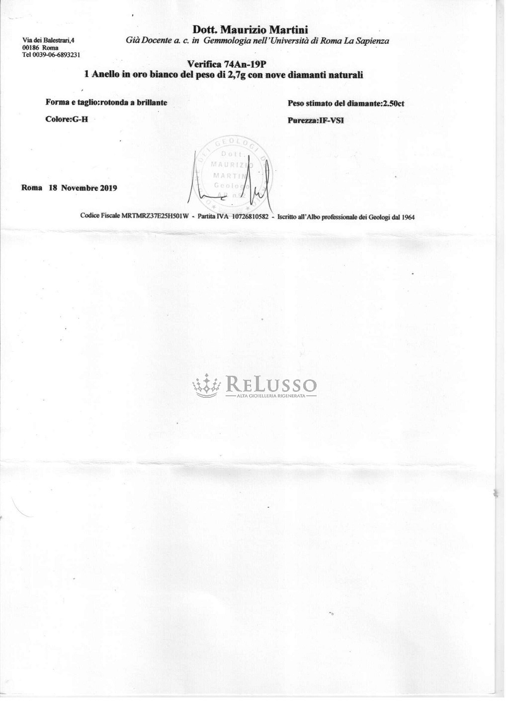 The ring is accompanied by a gemological certificate drawn up by Prof.Dott. Maurizio Martini, professor at. c. in Gemology at the University of Rome La Sapienza.