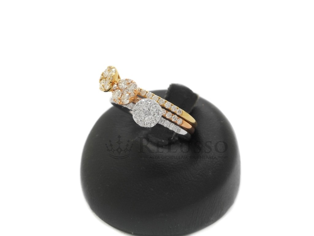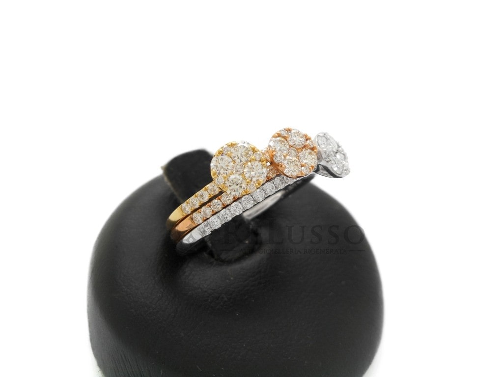 Jewel composed of 3 rings in 18kt yellow, white and rose gold and diamonds, made to form a single trilogy ring once worn.