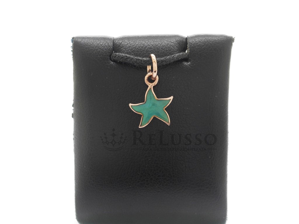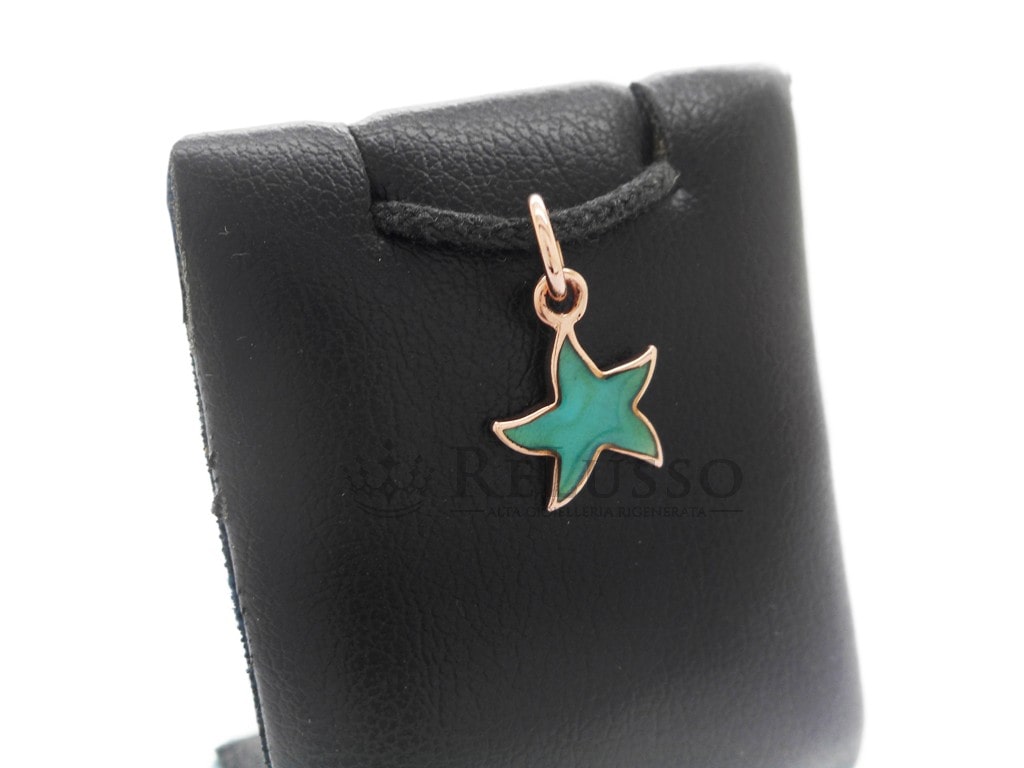 Charm Estrella Dodoen oro rosa 375 (9Kt) y esmalte turquesa. El amuleto Estrella significa: Quien me encuentra es feliz.