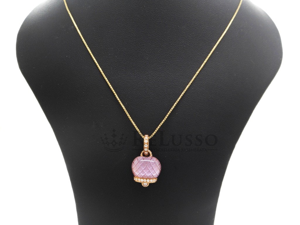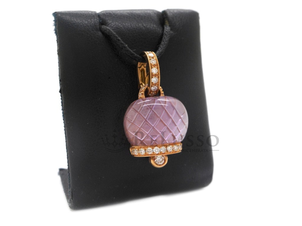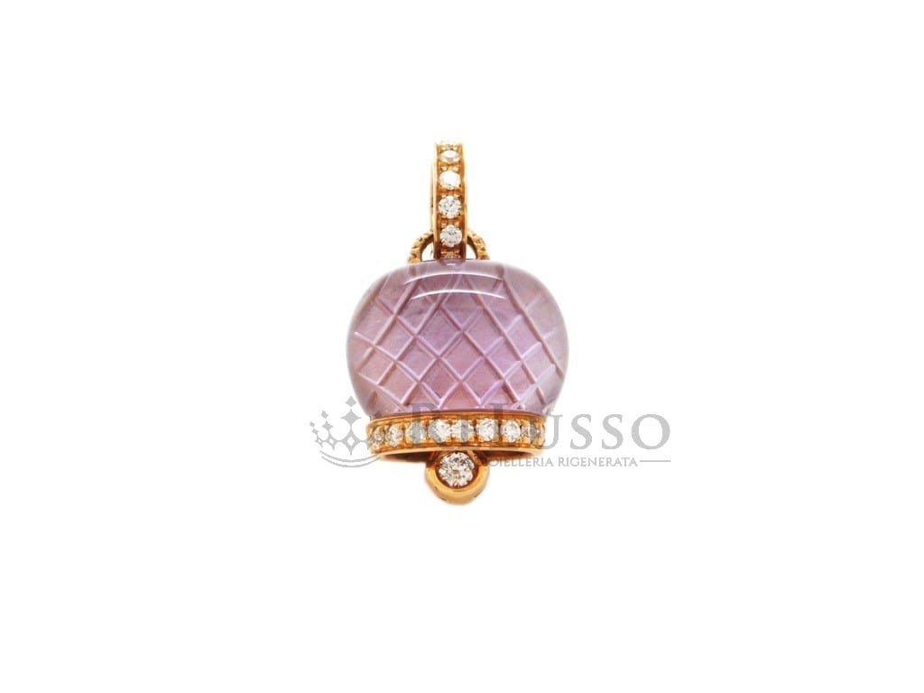 Colgante Chantecler en oro rosa de 18kt de la famosa colección Campanelle con diamantes talla brillante y amatista. El diámetro de la campana es de 1,50cm, el collar se vende por separado.
