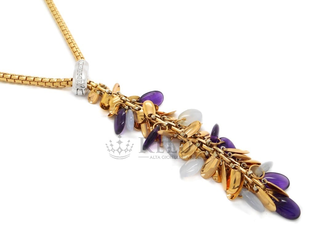 Collar Fope en oro rosa con diamantes y piedras semipreciosas.