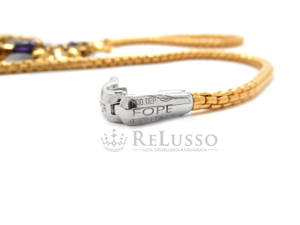 Collar Fope, modelo de arriba a abajo, en oro rosa y blanco de 18 kt con amatistas y cristal de roca, adornado con 7 pequeños diamantes en el cierre, con un peso total estimado de 0,05 ct.