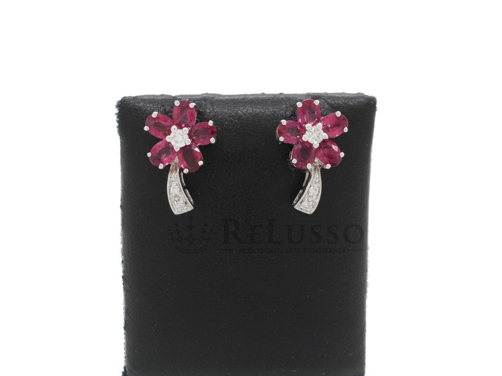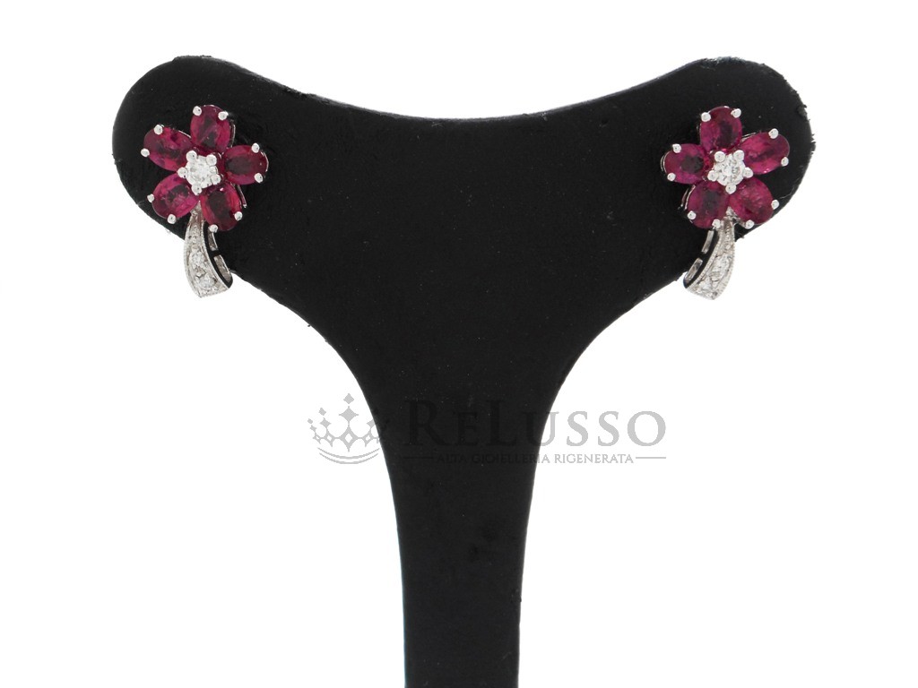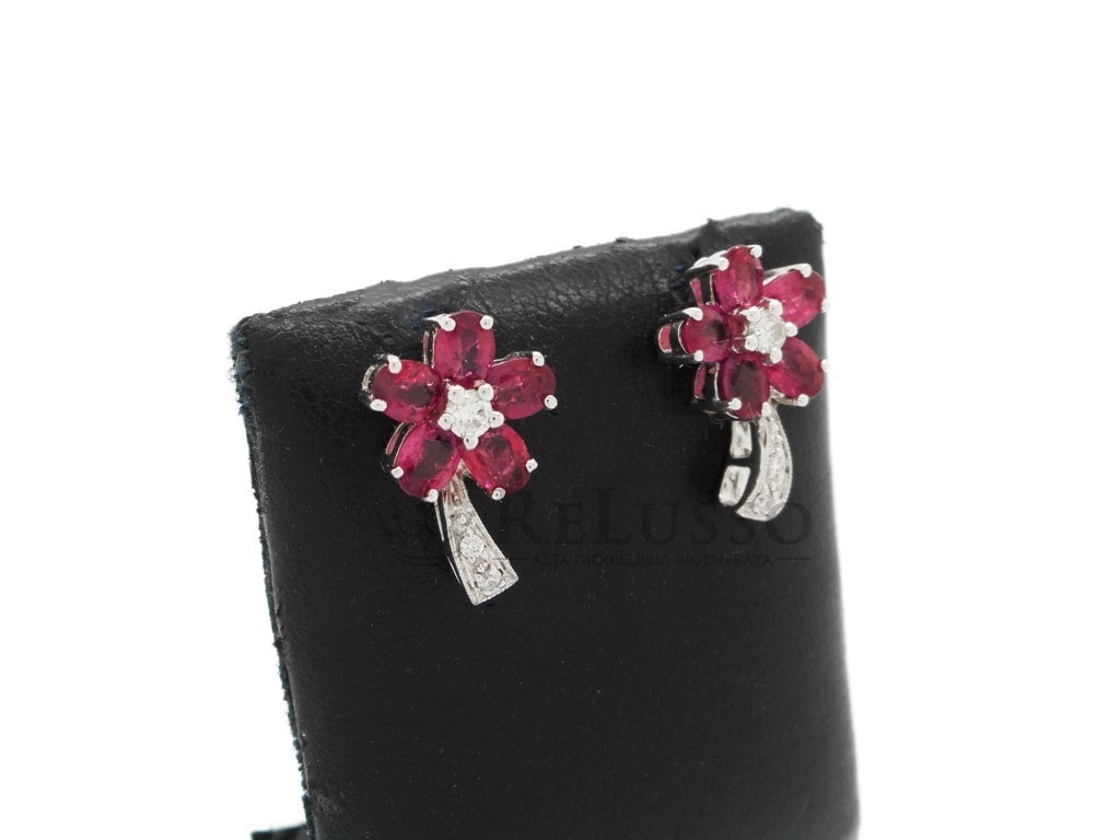 Pendientes de Flor en Oro Blanco 18kt con Rubíes 2,32ct y Diamantes 0,16ct.