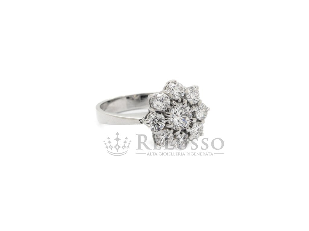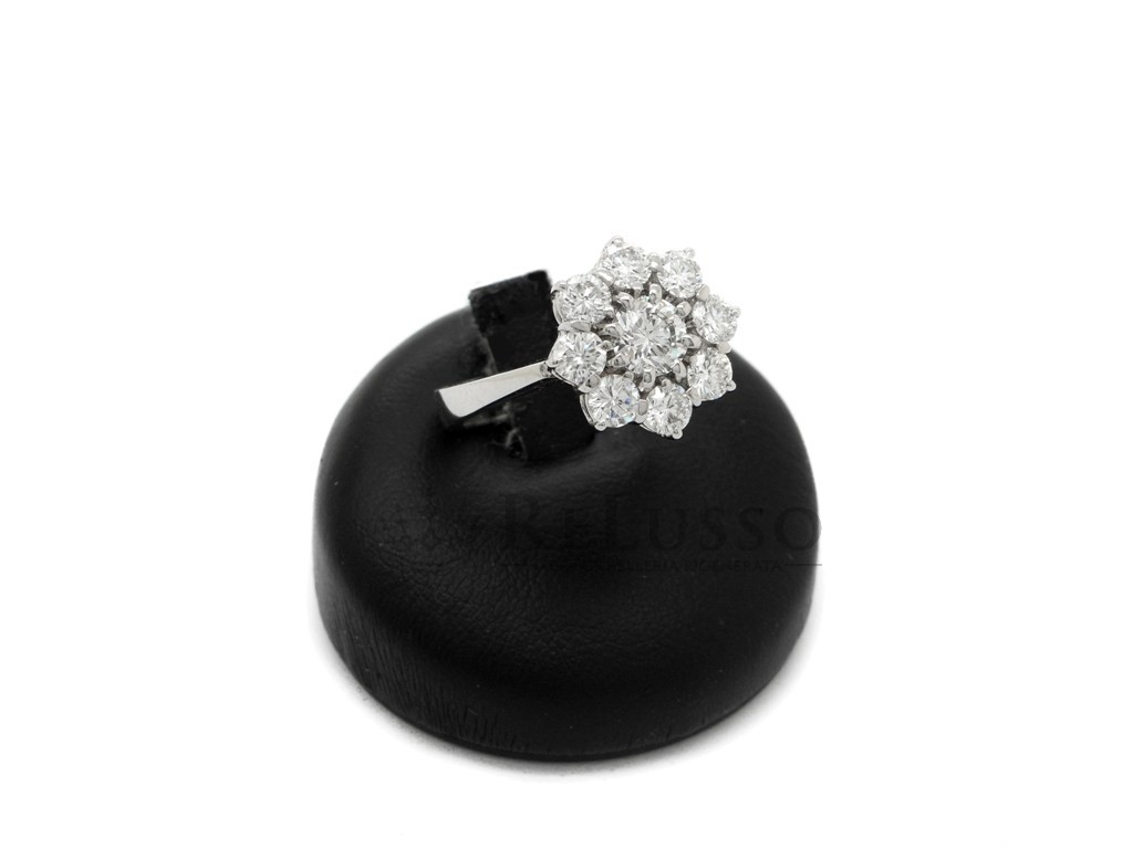 Anillo flor en oro blanco y diamantes por un total de 1,60ct Color H.