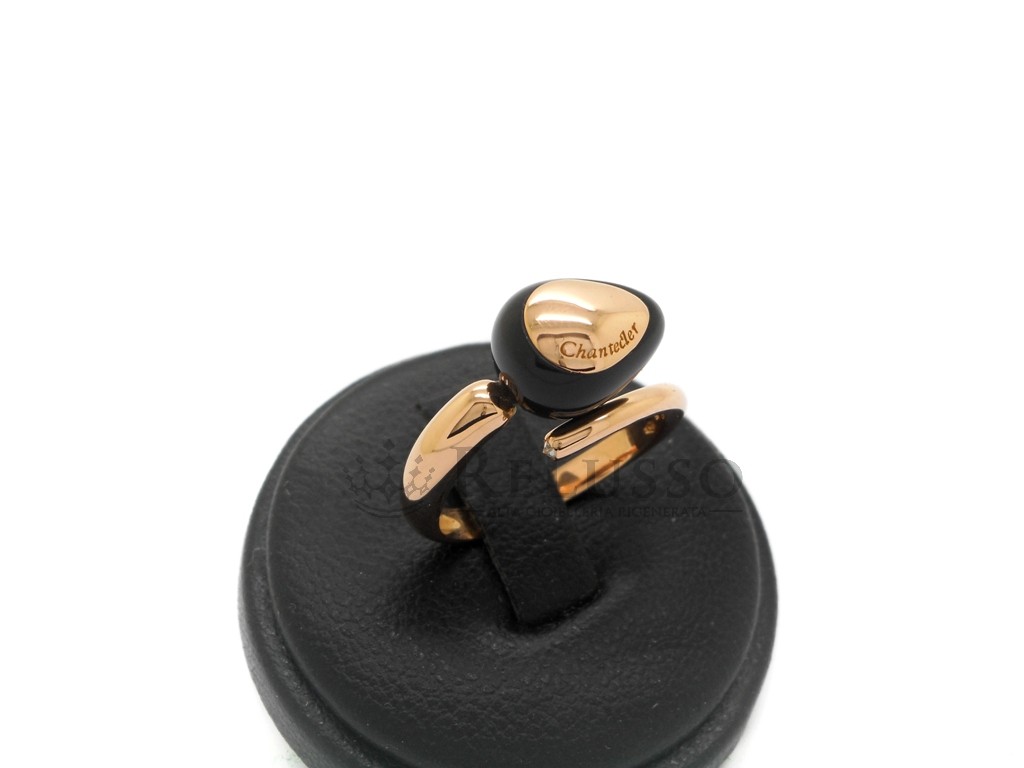 Bague Chantecler Capriful contrariè en or rose avec onyx et diamant.