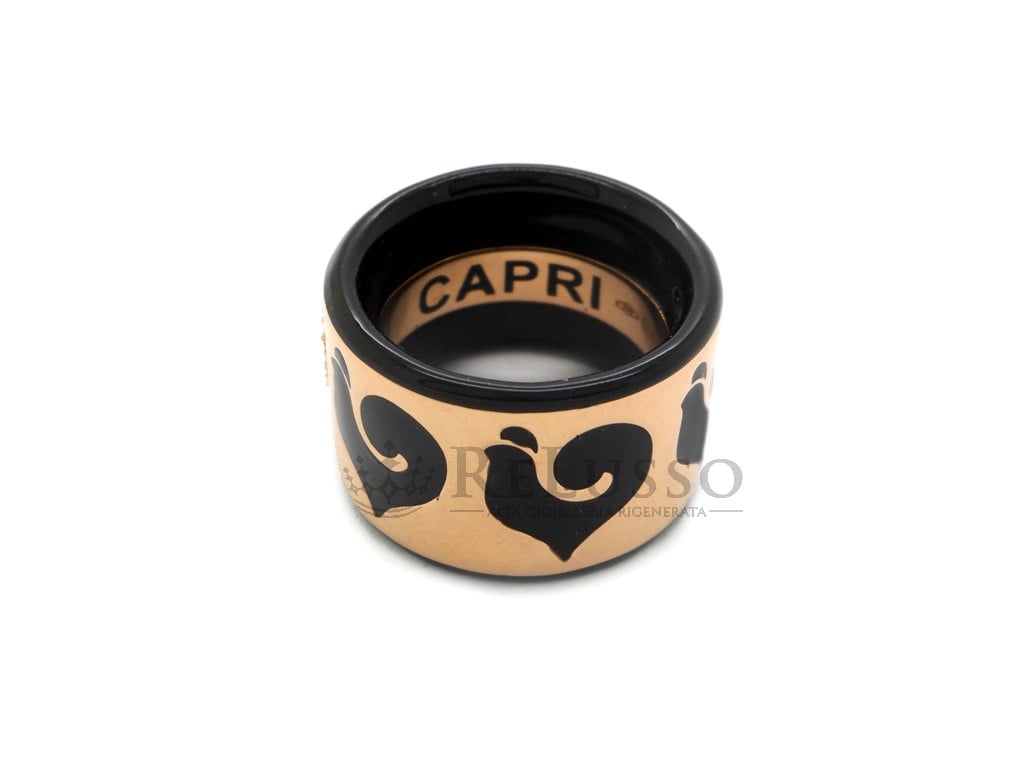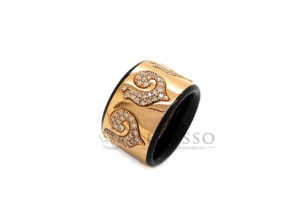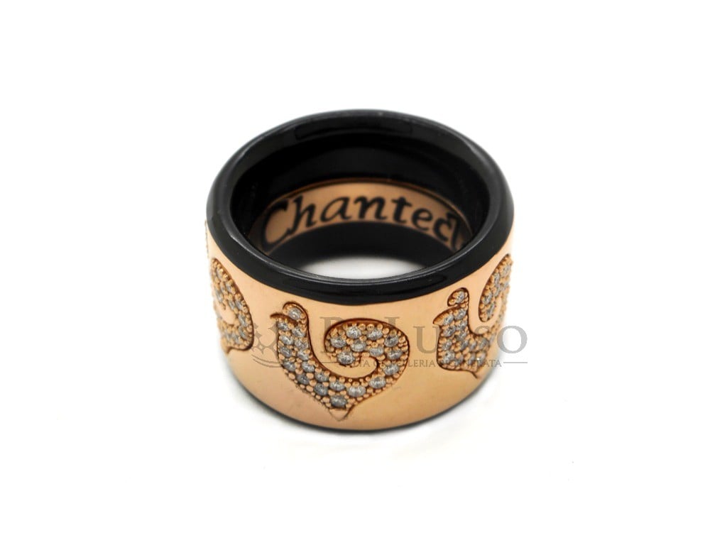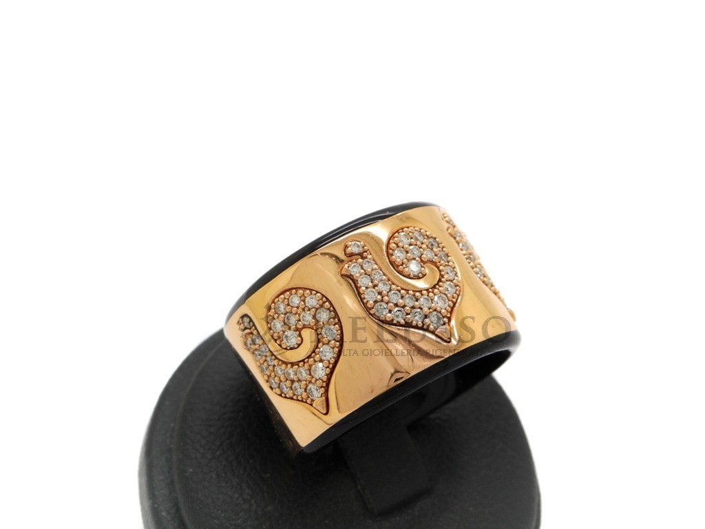 Bague bandeau Chantecler Carousèl en or rose 18Kt, coqs en pavé de diamants et émail noir. Taille 16 ITA (Non modifiable).