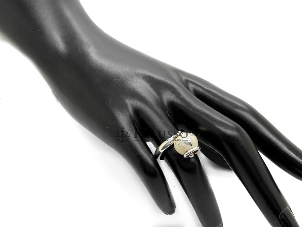 Bague double face Chantecler Campanella en argent et émail blanc nacré de la collectionEt Voilà. Sur le devant de la cloche on retrouve l’écriture Chantecler et le coq classique, tandis que sur le de retour, ils sont reproduits les piles. Taille 13 ITA (Modifiable).
