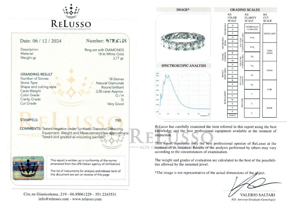| Certificat | ReLusso (GG Igi Antwerp) |