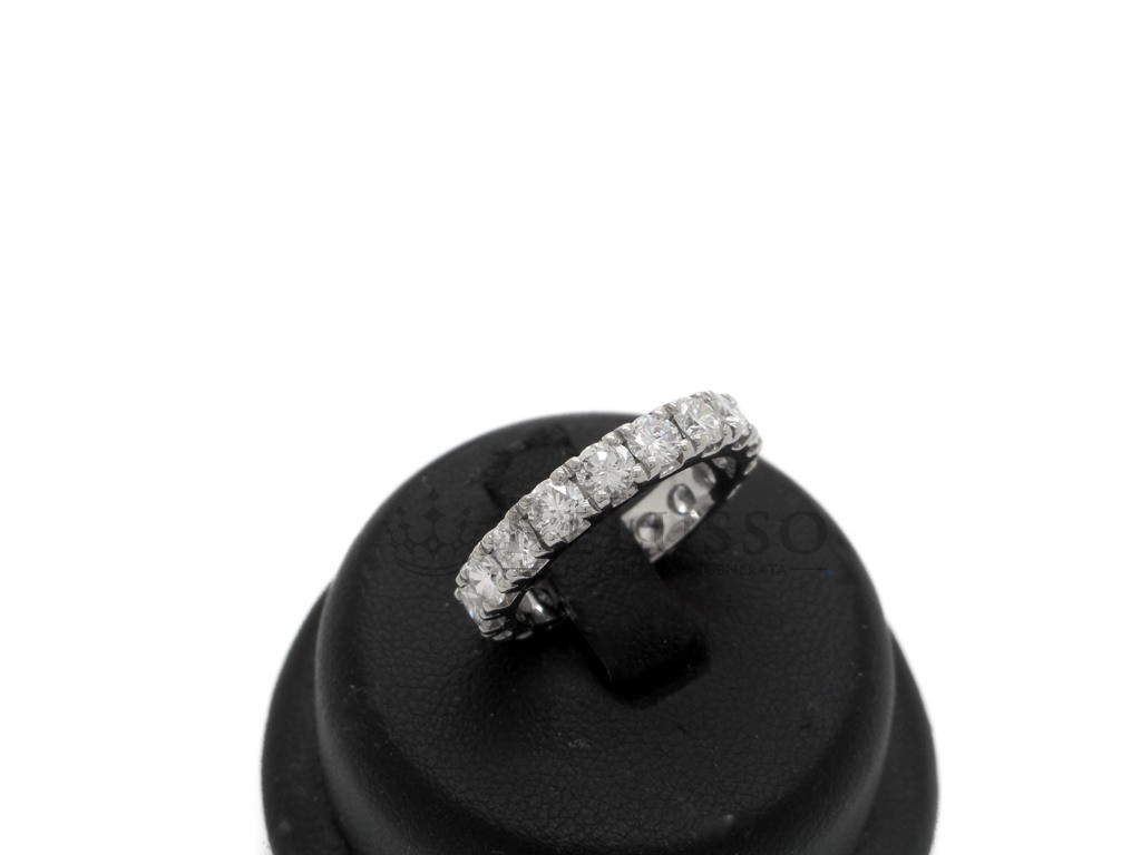Bague ronde modèle Eternity en or blanc 18 carats, avec 18 diamants ronds taille brillant pour un poids total estimé à 2,50ct. totaux, couleur G-H, pureté SI.